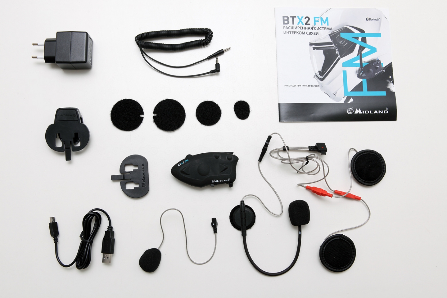 Полный комплект поставки Midland BTX2 FM, в том числе – инструкция на русском языке