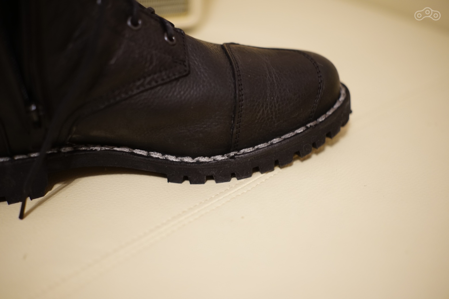 Толстая подошва с высоким каблуком, на манер тяжёлой обуви известных Английских производителей, что в своё время очень полюбились футбольным фанатам. Держа ботинок в руках, кажется очень жёсткой. На ноге же, оказалась удобной и жёсткой лишь в меру. На кручение не пробовал, так как обувка хоть и мото, но с условной защитой... городские они, повседневные.