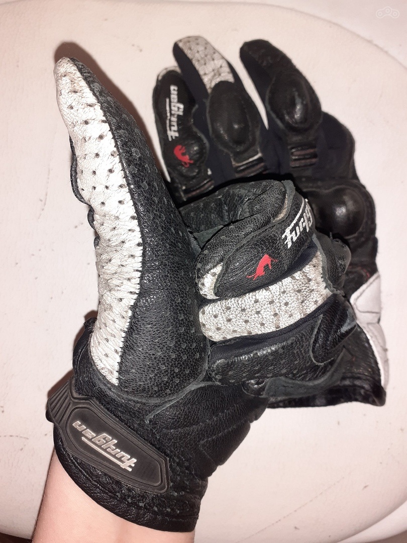 За свою мотожизнь я стерла не один мотопосох, мотостальные башмачки и не одну пару мотоперчаток. Как правило жизнь перчей – 1 сезон. Активный, разумеется. Очень нравились Sidi по посадке, но вот отмывать окрашенные руки после дождя – это раза 3 помыть посуду после ужина большой семьи. Или ходить с руками, которые словно забили черной татуировкой))) Были Clover, но… дождь скукожил их и они начали душить кисти. Про RS-Taichi не могу сказать ничего плохого, но эксплуатирую я их исключительно на треке, поскольку удлиненные манжеты не налезают на городскую куртку. Были Five, но модель была со швами внутрь и неудачно расположенной защитой костяшек, и натирало на пальцах настолько дико (до крови), что нам пришлось расстаться… на авито… Кстати, их купила метательница ножей))