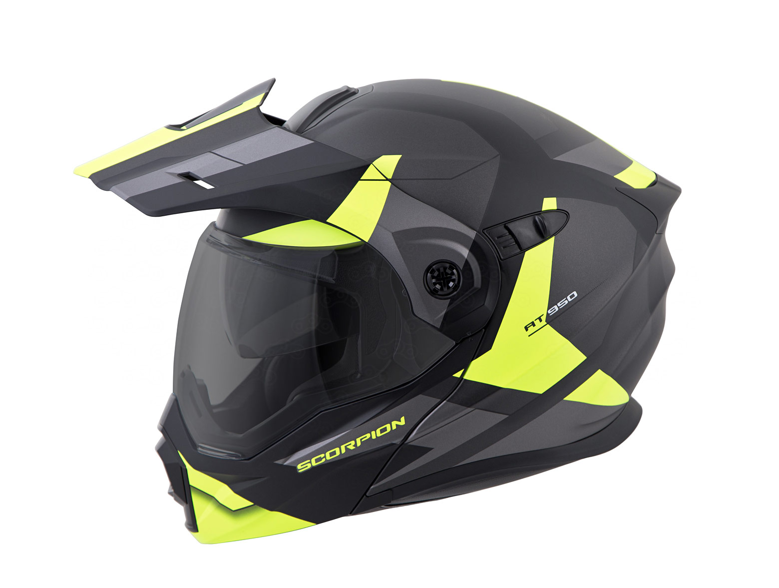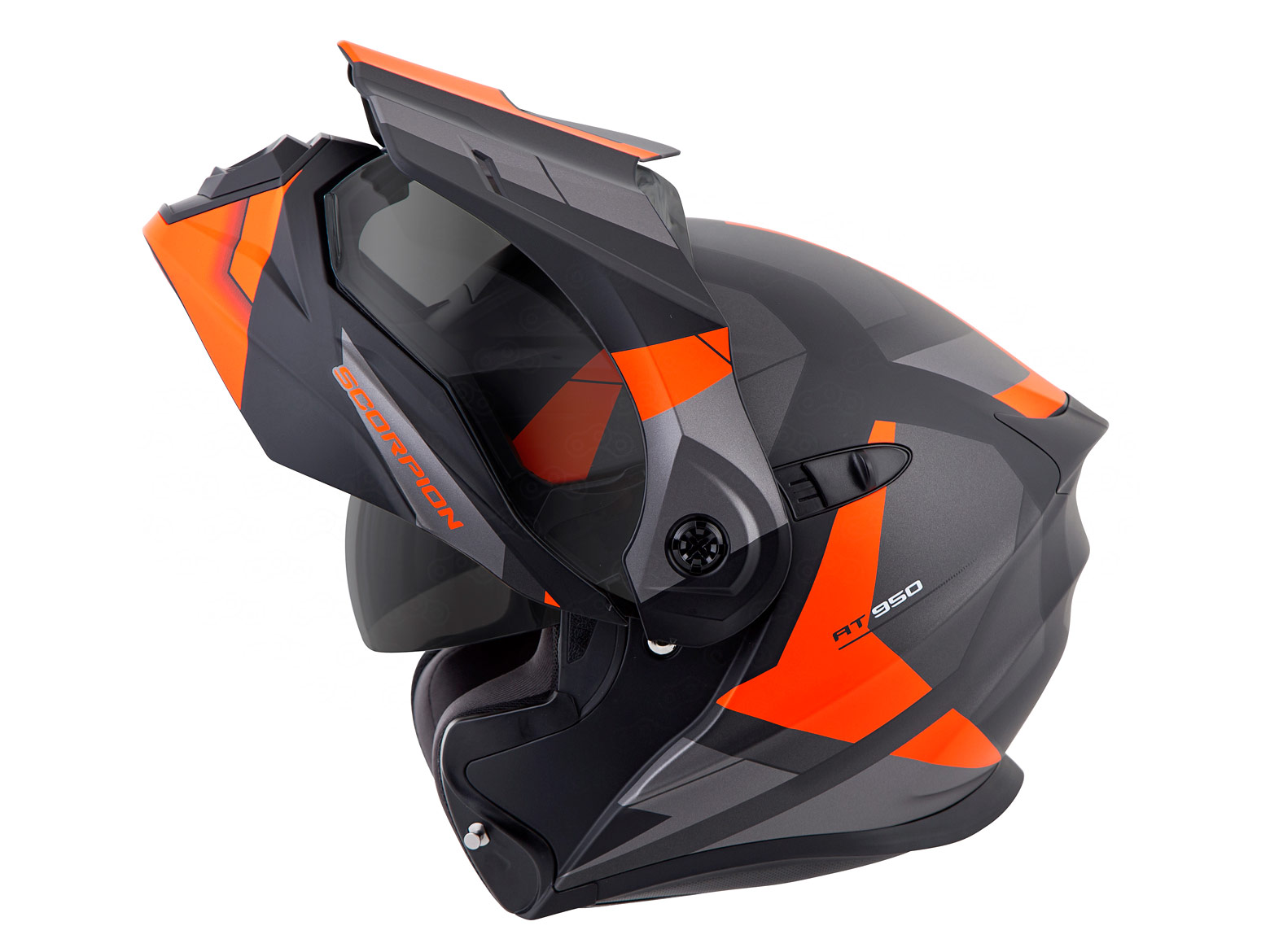 Разработчики переосмыслили подход к разработке «дуал-спорт» шлемов. Удачно совместив преимущества модуляра и внедорожного шлема, инженеры «Скорпион» представили модель AT-950, созданную на базе хорошо зарекомендовавшего себя GT-920.