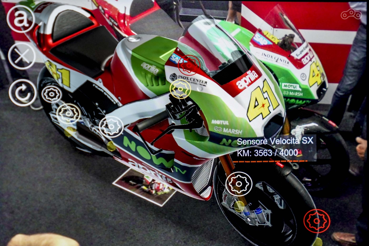 Объёмная 3D-модель мотоцикла Aprilia RS-GP в свою очередь поможет продумать стратегию команды и скорректировать программное обеспечение, а также оставить служебные заметки, когда мотоцикла нет в гараже.