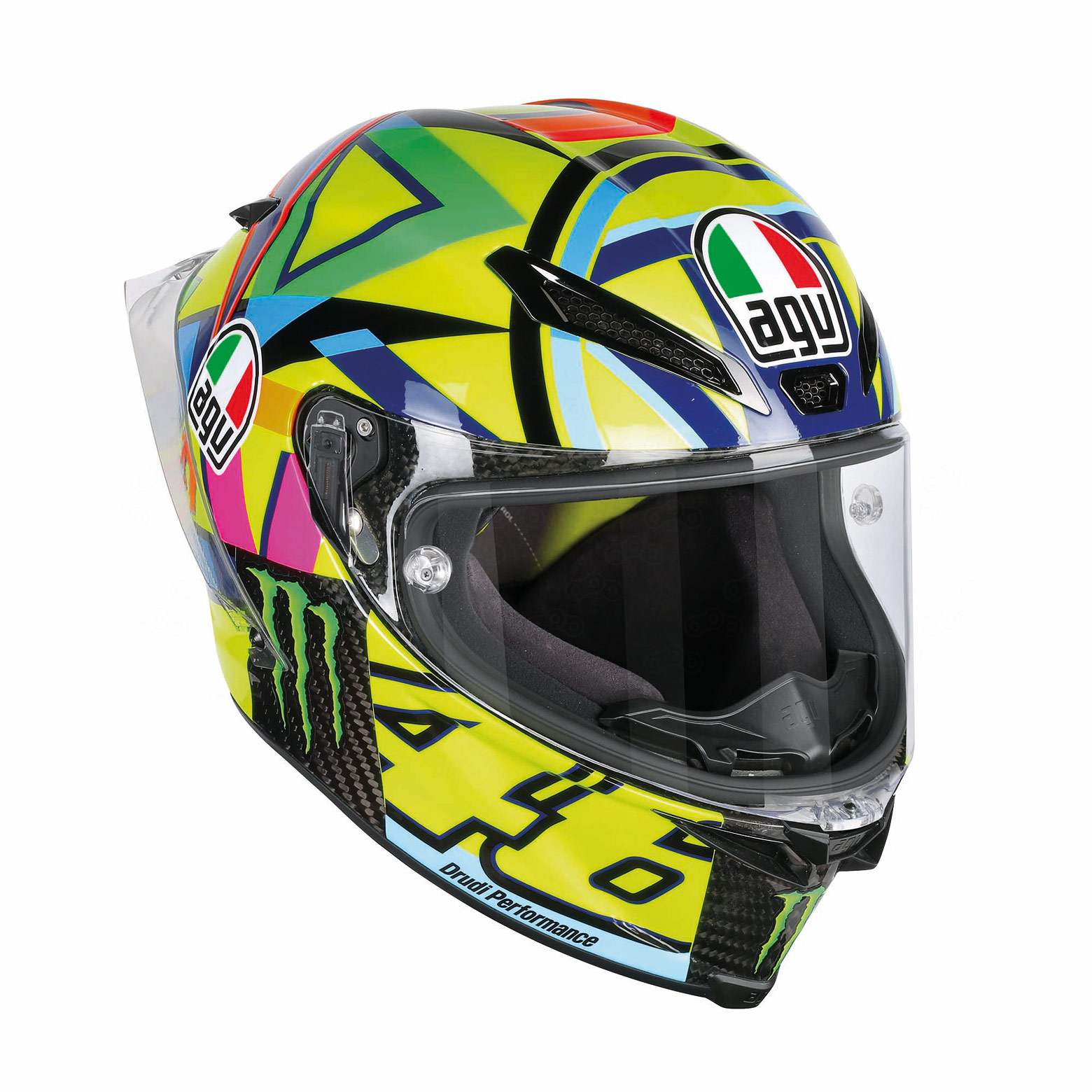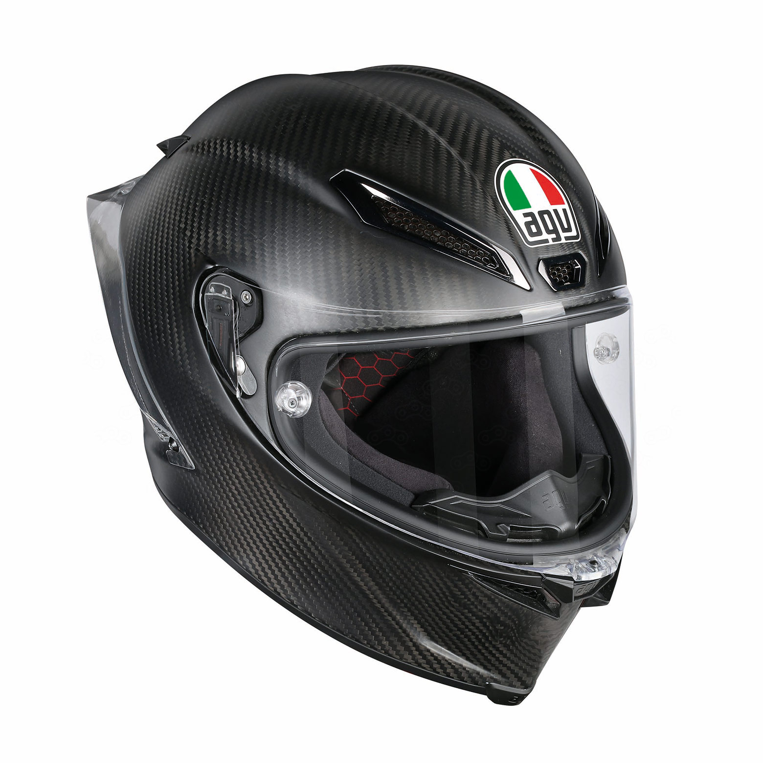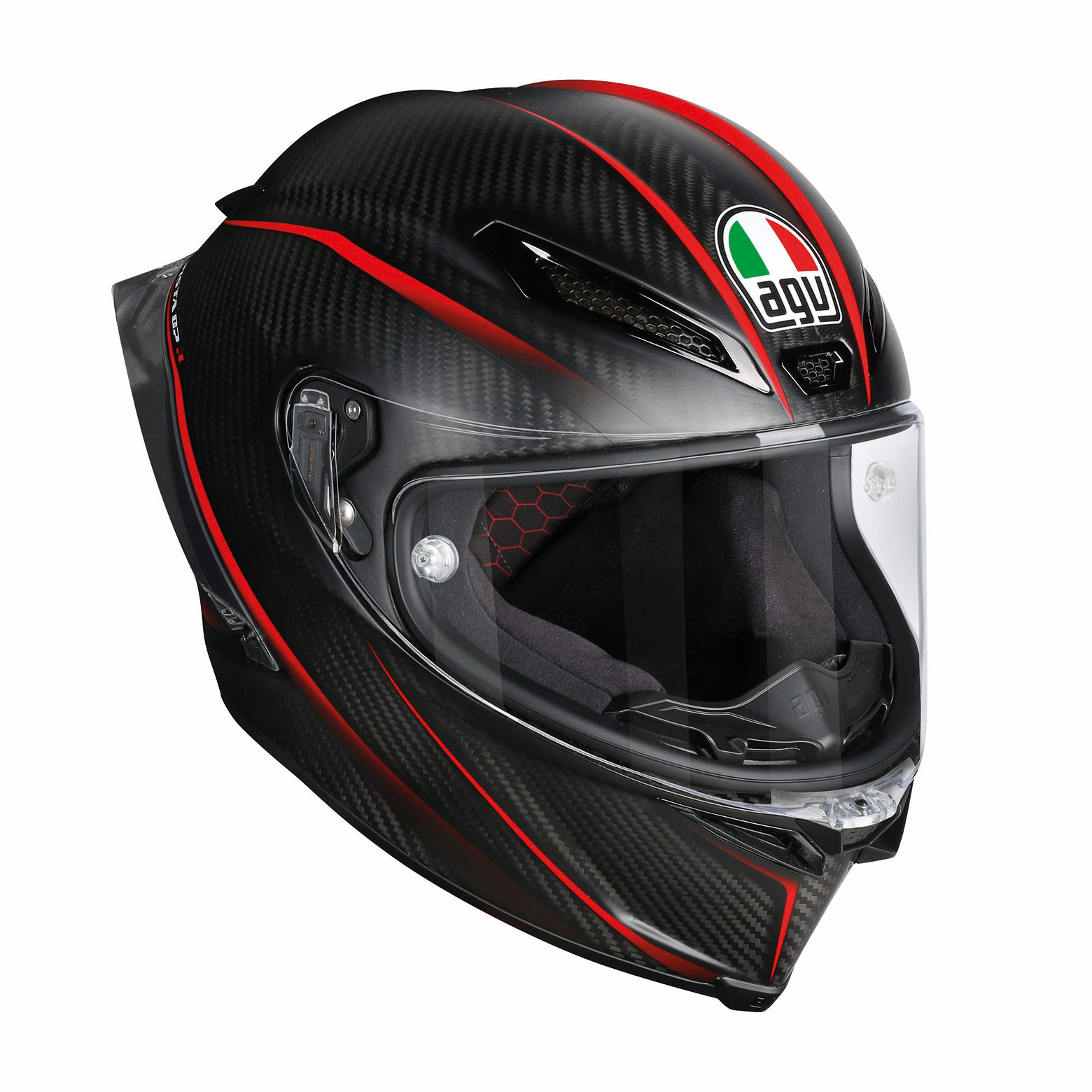 AGV Pista GP R – первый в мире шлем, имеющий подготовку для установки гидратора – трубка для питья проведена через специальные отверстия в подкладке и соединяется с питьевой системой, расположенной в горбе спортивного комбинезона Dainese.