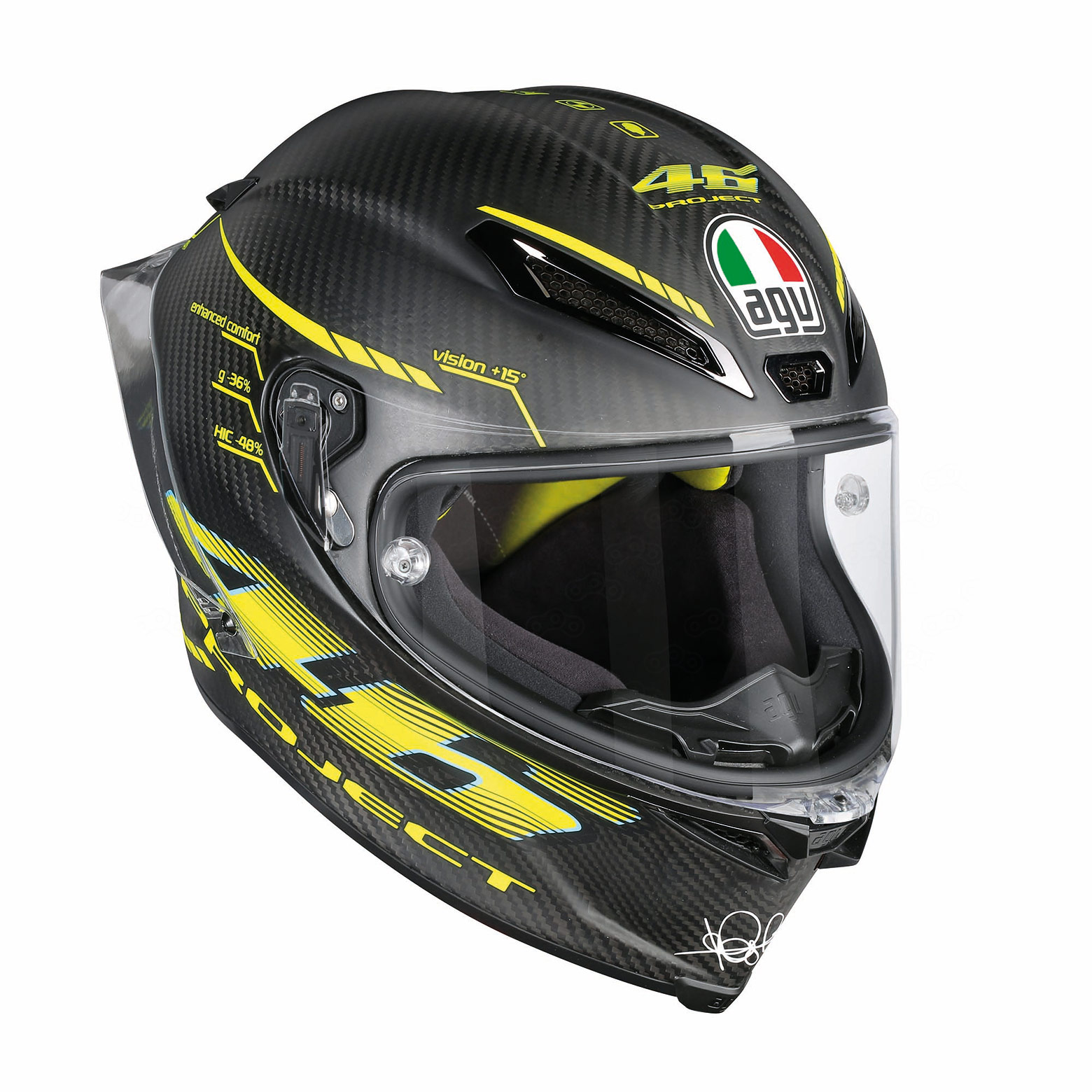 Шлем оснащён визором с улучшенной системой крепления и новым замком. Углы обзора значительно увеличились, по сравнению с прошлым поколением шлема: 85° по вертикали и 190° по горизонтали. Эти показатели на 15% превосходят требования сертификации MotoGP.