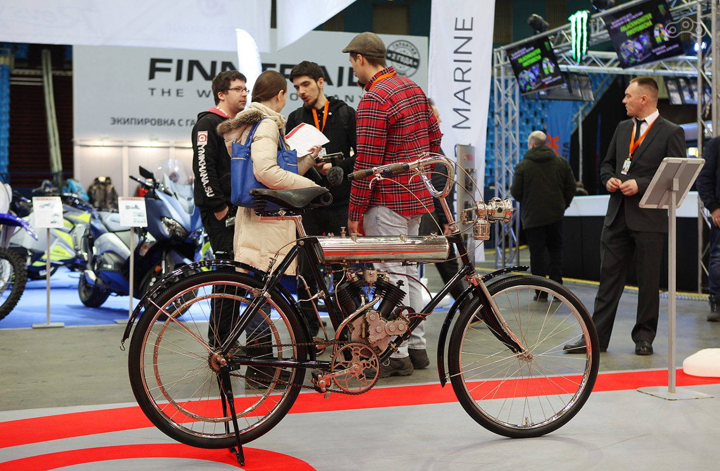 А вот стенда шведской Husqvarna найти не удалось, однако, познакомиться с их главной новинкой, неоклассиком Vitpilen было можно на стенде In-Moto. Мотоцикл – великолепный, дизайн сносит крышу, однако немаленькая стоимость почти в полмиллиона рублей может отпугнуть даже самых преданных ценителей изящных форм.