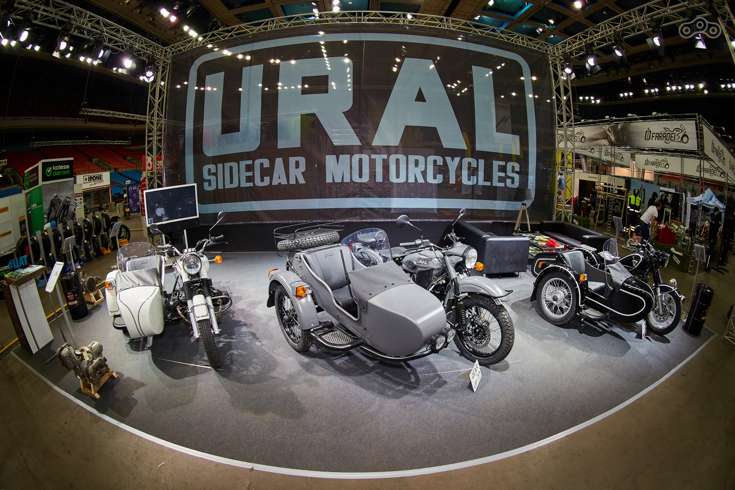 Центральная часть «Мотовесны» – стенды компаний, работающих на российском рынке мототехники. Представительство BMW Motorrad впервые показало главную новинку сезона, туристический эндуро F 850 GS, и мощный люксовый турер Grand America. Harley-Davidson привёз полностью переработанную линейку Softail. Indian, ещё один классический американский бренд, выставил обновлённые модели Scout и роскошные туреры.
