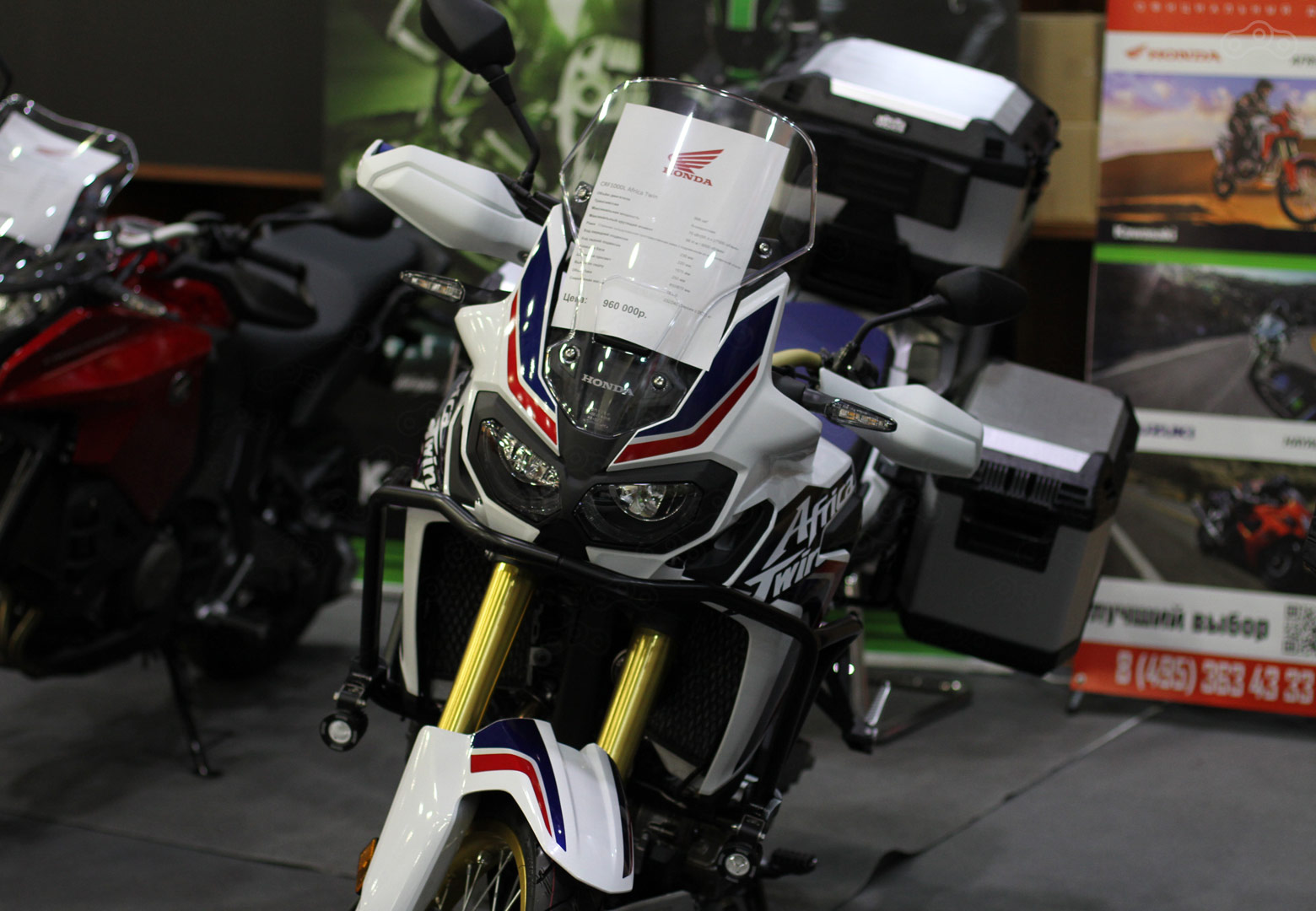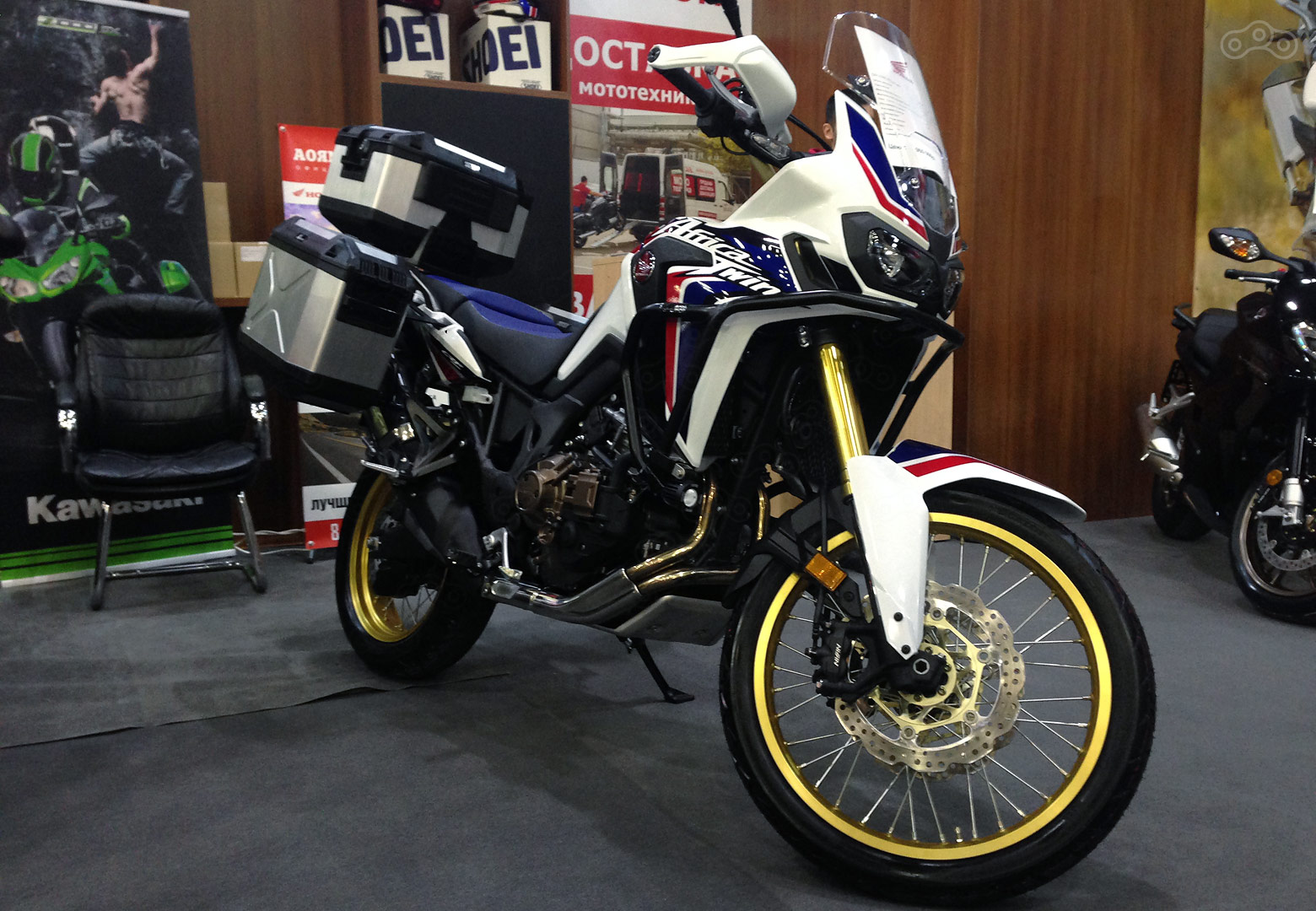 Одной из самых ожидаемых новинок 2016 года, разумеется, стала Honda Africa Twin, представленная на стенде компании Аояма Моторс. Новый мотоцикл, оснащенный всеми необходимыми «допами», собирает очереди из продавцов (!), желающих на него присесть.