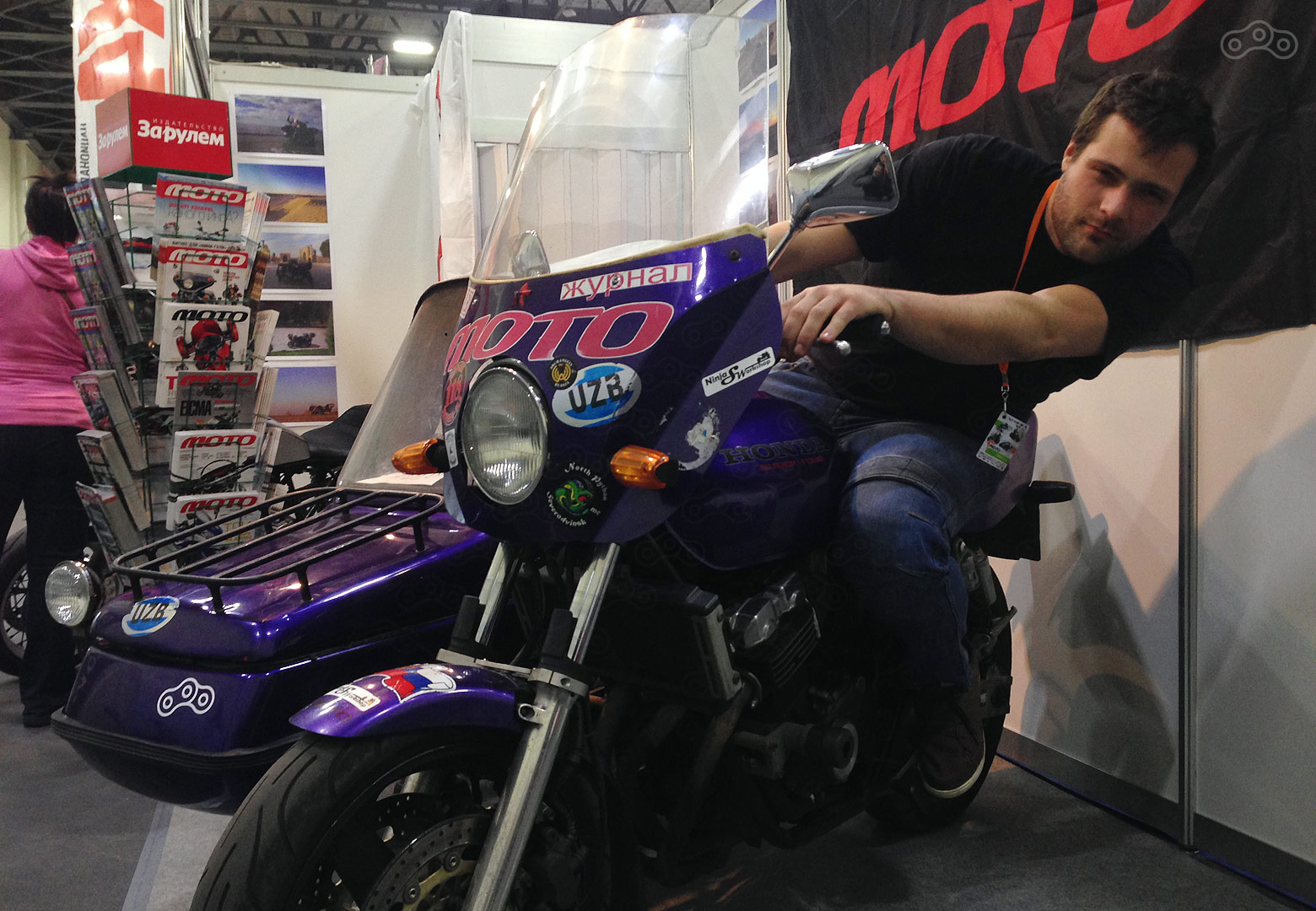 На правах рекламы – эксклюзивный «колясыч» на стенде журнала «Мото» продаётся по вполне антикризисной стоимости в 160 000 рублей (без коляски – 100 тысяч). Можно купить на сдачу с «Африки» и ездить на ней туда, куда на «Хонде» соваться страшно – мотоцикл уже покорил просторы Узбекистана и, похоже, не намерен останавливаться.