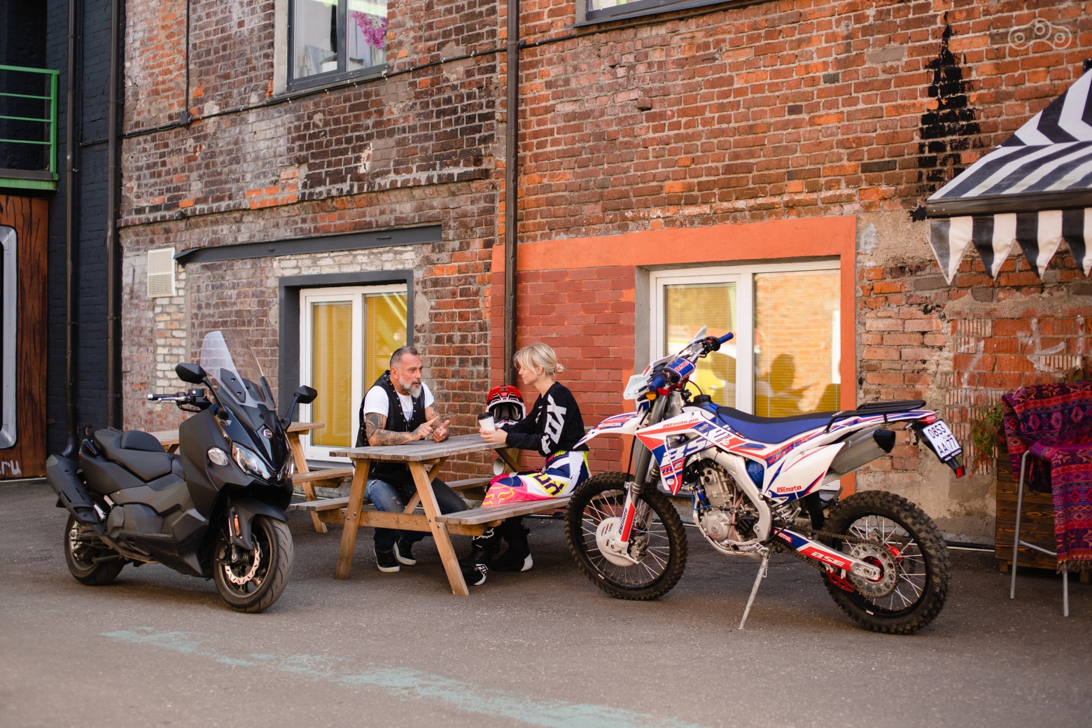 Красавчики-скутеры SYM и питбайки SSSR тоже в деле. Потрогать, посмотреть, посидеть, обсудить - мы только за!