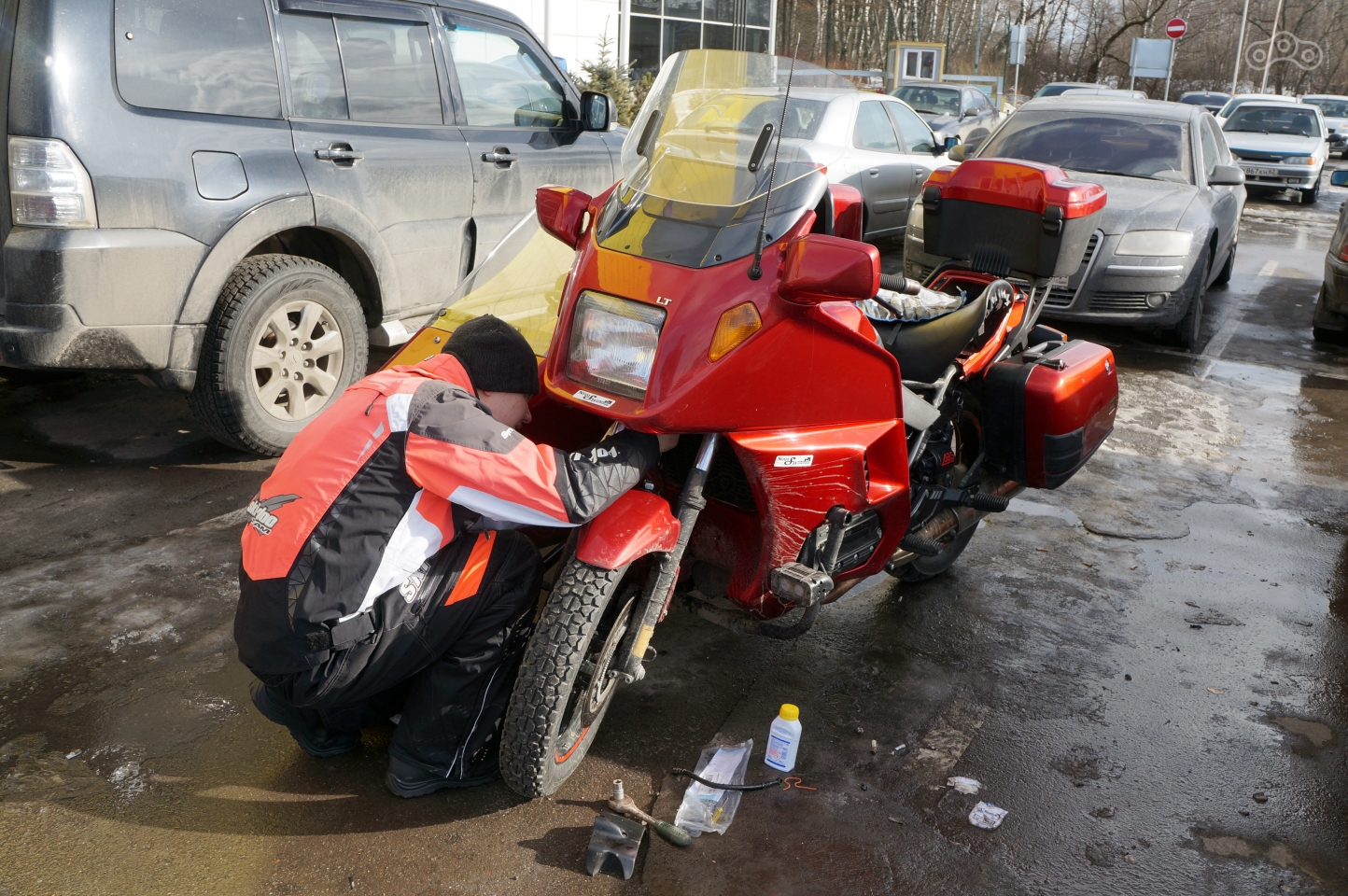 Не очень ранний подъём, три комплекта экипа в багажник и вперёд — собирать друзей Егора и Лёху по домам и всей гурьбой откапывать гараж. Изрядно пропотев, мотоцикл всё же вызволили и, с небольшим запасом по времени, выдвинулись в Истру.