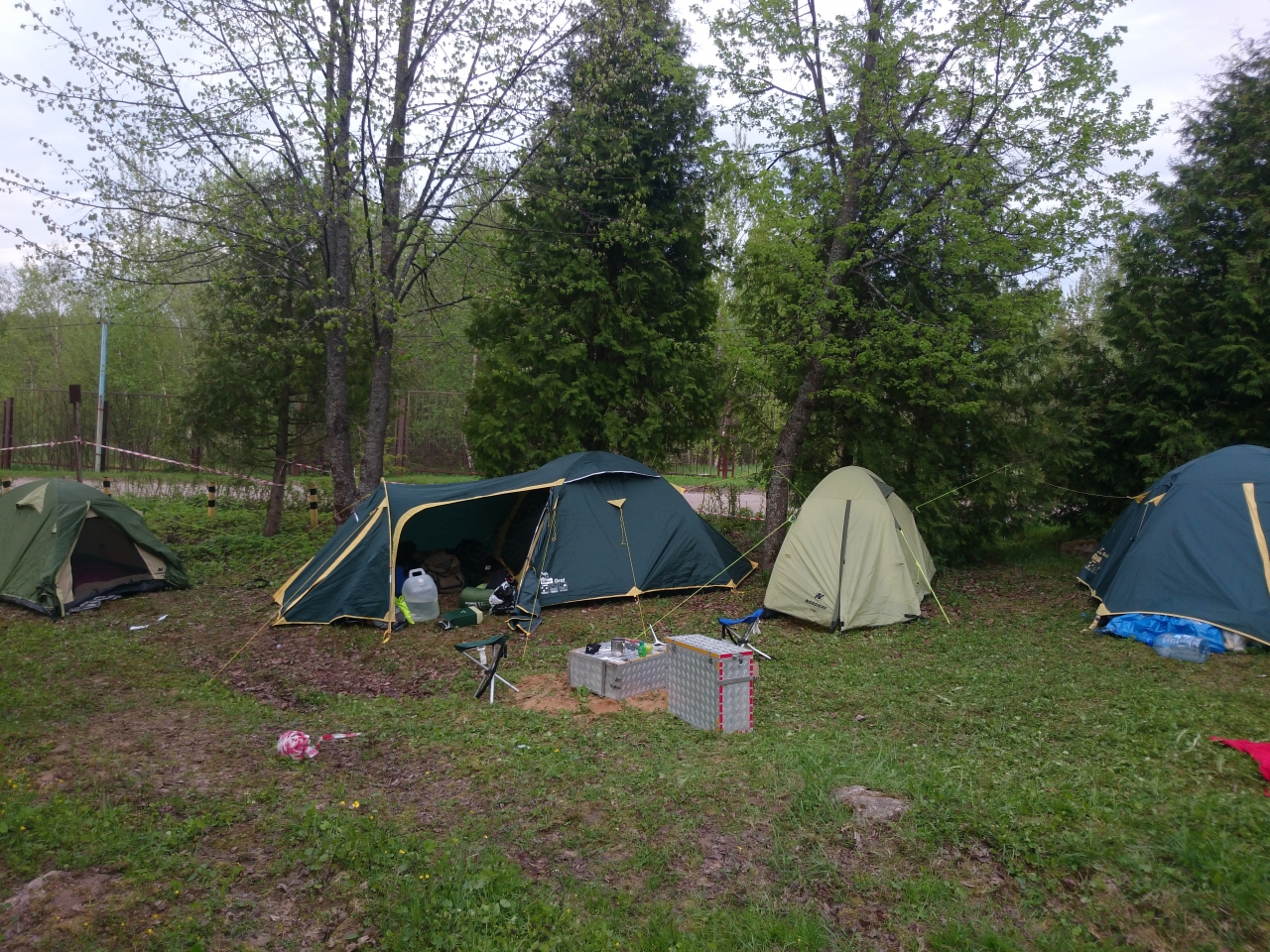Сама территория парк-отеля находится на этапе перестройки-восстановления — есть как и живые корпуса, так и здания разной степени обветшания. Мы, повторюсь, устроились в поле, в тени деревьев, наученные горьким опытом малоярославца о том как не надо ставить палатку. Но это не помогло — если в субботу было ещё достаточно тепло и мы лишь слегка погуляли по территории, то ночью все слаженно отбивали чечётку зубами — температура провалилась куда-то в сторону заморозков, заявила что так и надо и возвращаться к климатической норме не собирается.