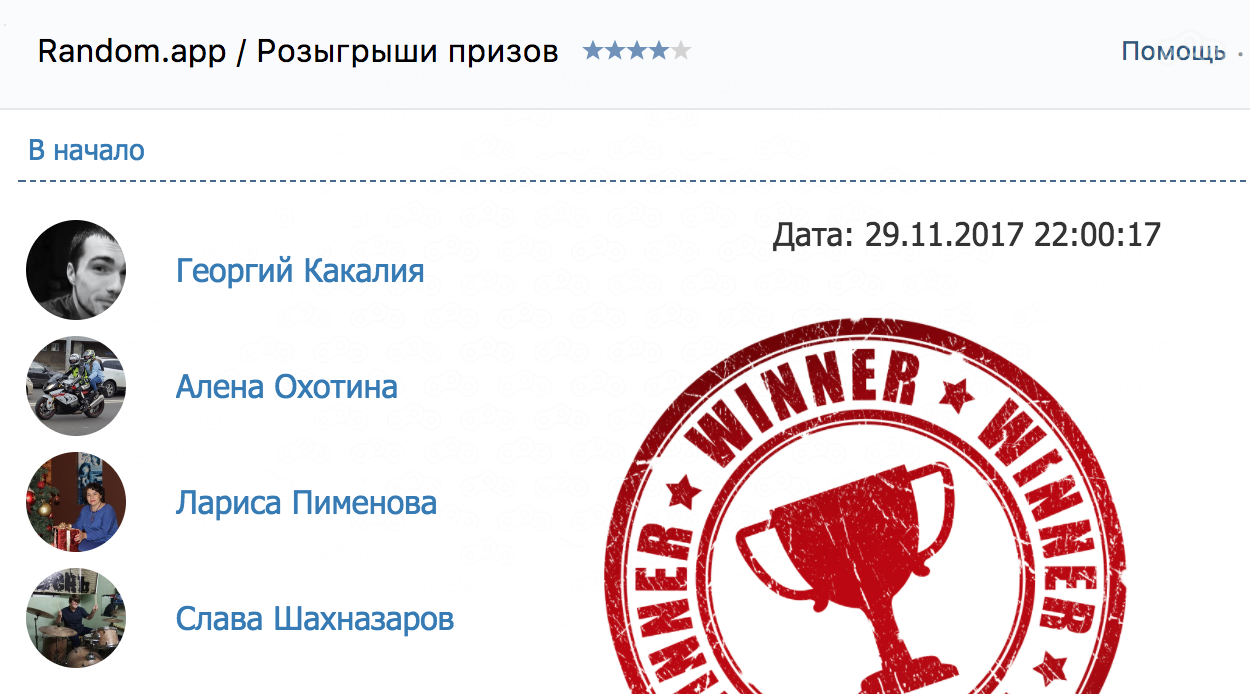 Четверо победителей будут выбраны 29 ноября в 22:00 по Московскому времени,