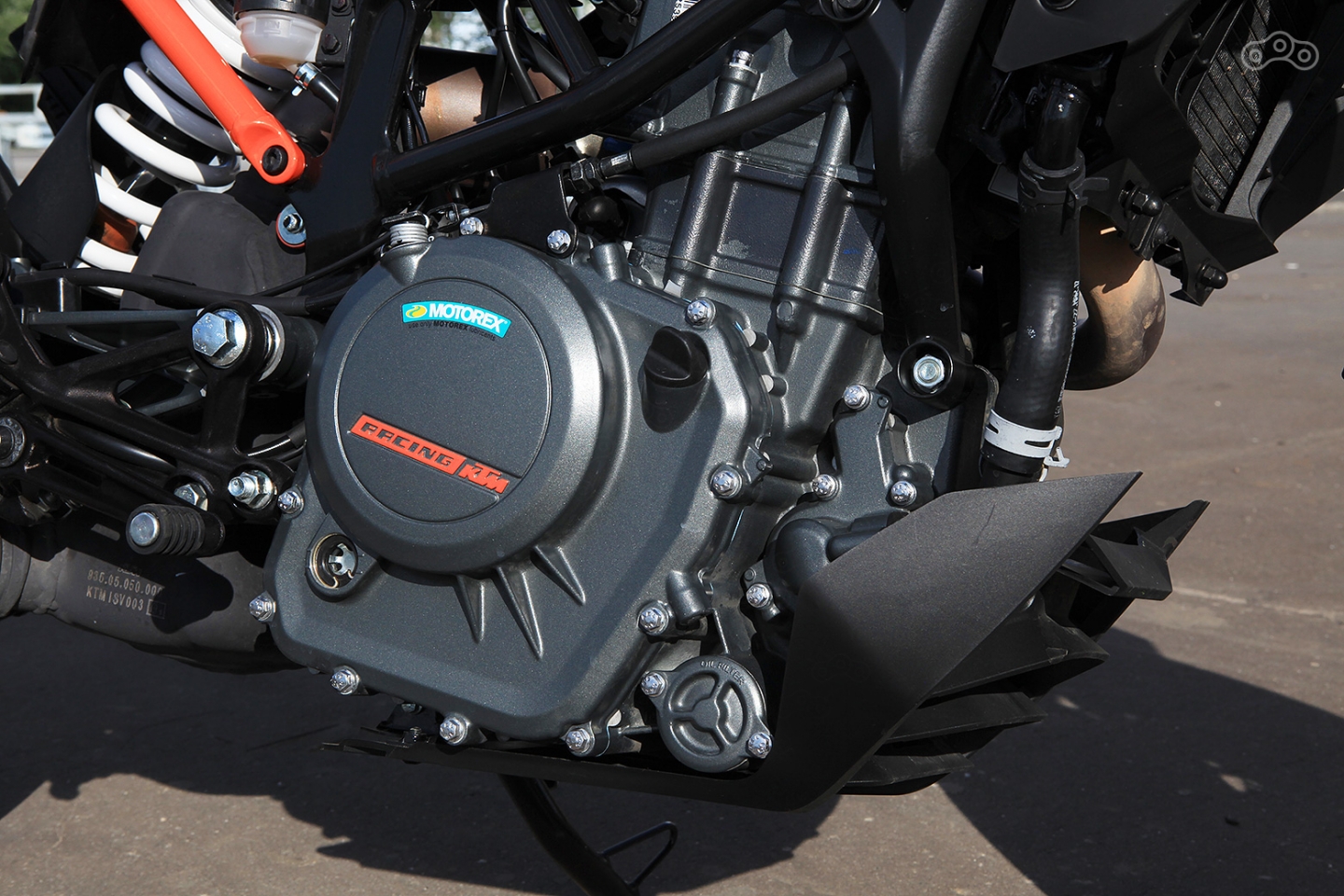 Не стоит ждать сюрпризов и от мотора, проверенного годами и имеющего много общего не только с Duke 125/200/390 но и с семейством Bajaj Pulsar. 31-сильная «одностволка» фактически имеет лишь свой цилиндр, в то время как «низ» мотора, включающий в себя картер, коленвал и КПП такие же.
