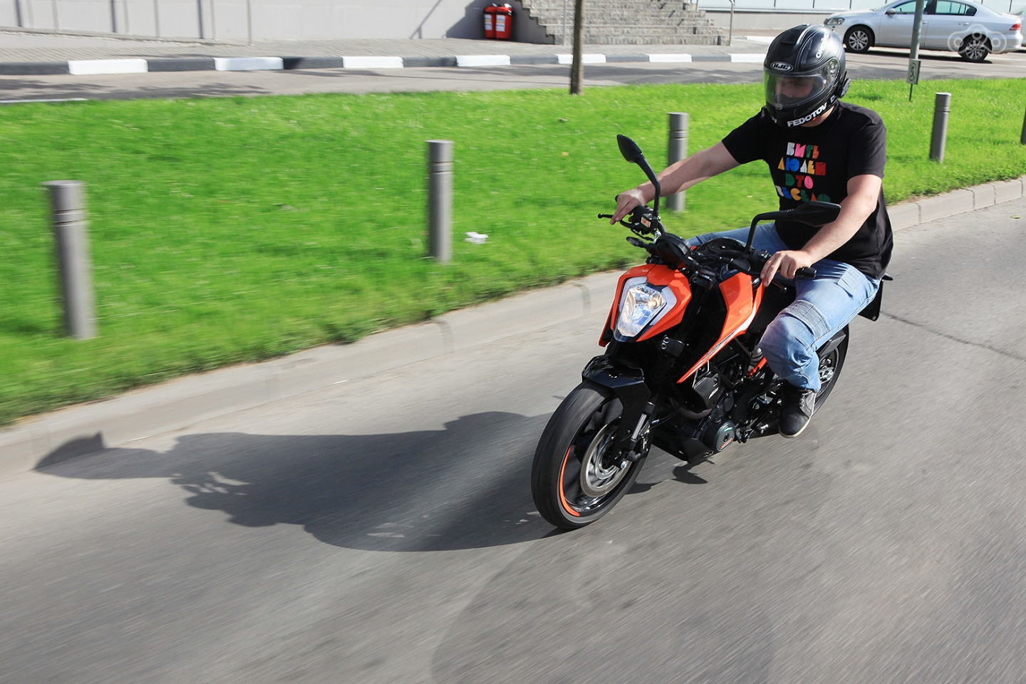 Ощущается мотоцикл всё так же остро, жёстко и азартно: в пробках узкая тушка, ограниченная лишь шириной руля, знает мало равных. В междурядье то и дело приходится бибикать, выгоняя очередного спортбайкера, затыкающего своей задницей путь к свету. Мотоцикл ощущается намного легче, заявленных на бумаге 149 килограмм, усилий прикладывать не нужно, общение с ним происходит на уровне намеков. Идеальный аппарат для города и новичков, желающих именно научиться ездить быстро.