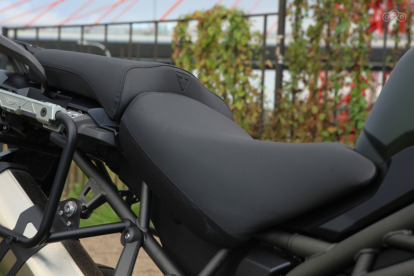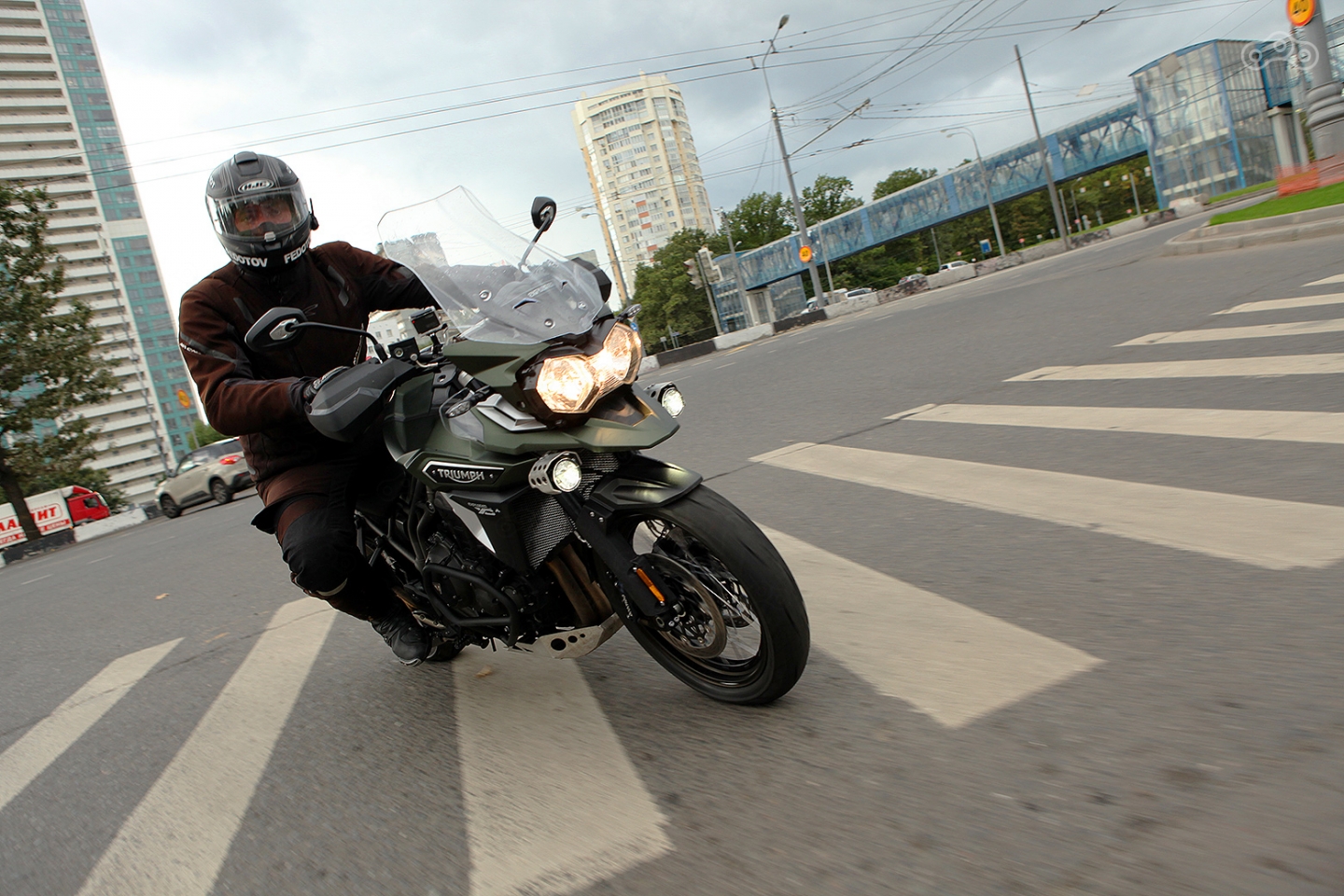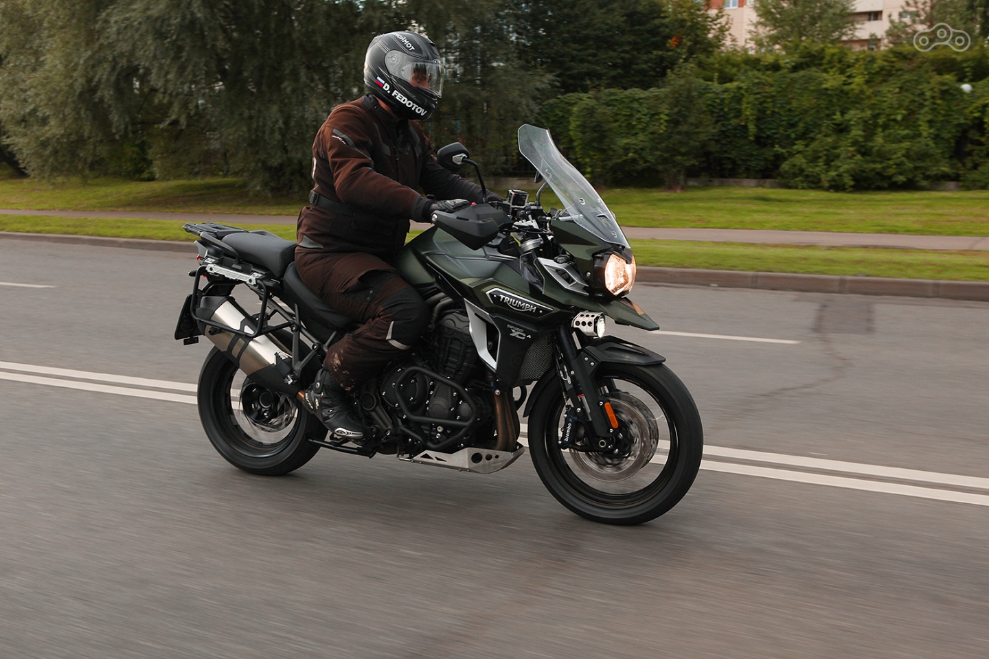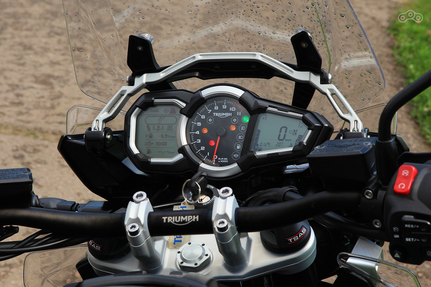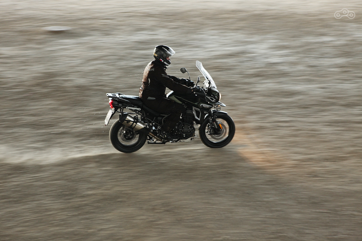 Попробуйте поставить Tiger рядом с каким-нибудь 2-цилиндровым V-образным конкурентом вроде KTM Adventure 1290 в песчаный подъём: там, где тракторные низа и пульсация помогут одному мотоциклу медленно, но верно ползти вверх, обороты и мощность рядного мотора в середине и наверху просто зароют заднее колесо. Чудес не бывает, и любой туристический эндуро всегда компромисс между внедорожными способностями, комфортом и динамикой. Просто британцы выбрали последние два пункта, и, нужно сказать, получилось у них отлично.