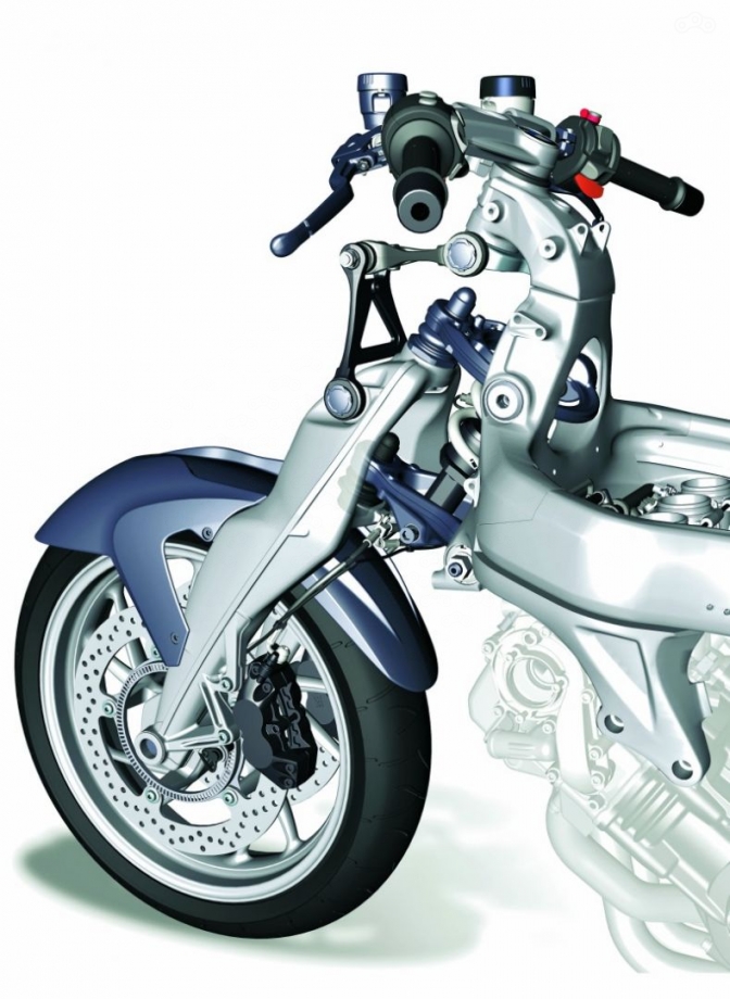 Привыкнуть к ней сложно, слишком уж велика разница с предшественницей, а оправившись от шока, глаза начинают цепляться за верхние рычаги передней подвески. Больше никаких телескопических вилок! Следом за баварцами, свое переосмысление популярной в 40-х годах прошлого века параллелограмной вилки, создали и японцы. Да какое!