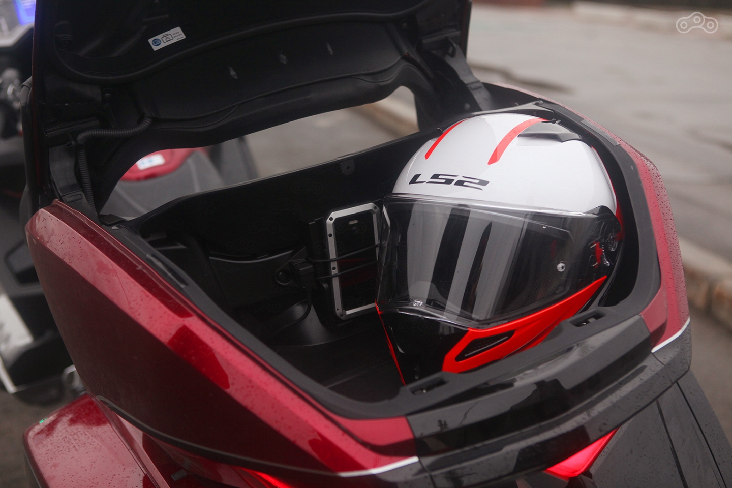 В центральный кофр влезает два шлема. А вот отсутствие отделки внутренностей на мотоцикле за 2,4 миллиона огорчает.