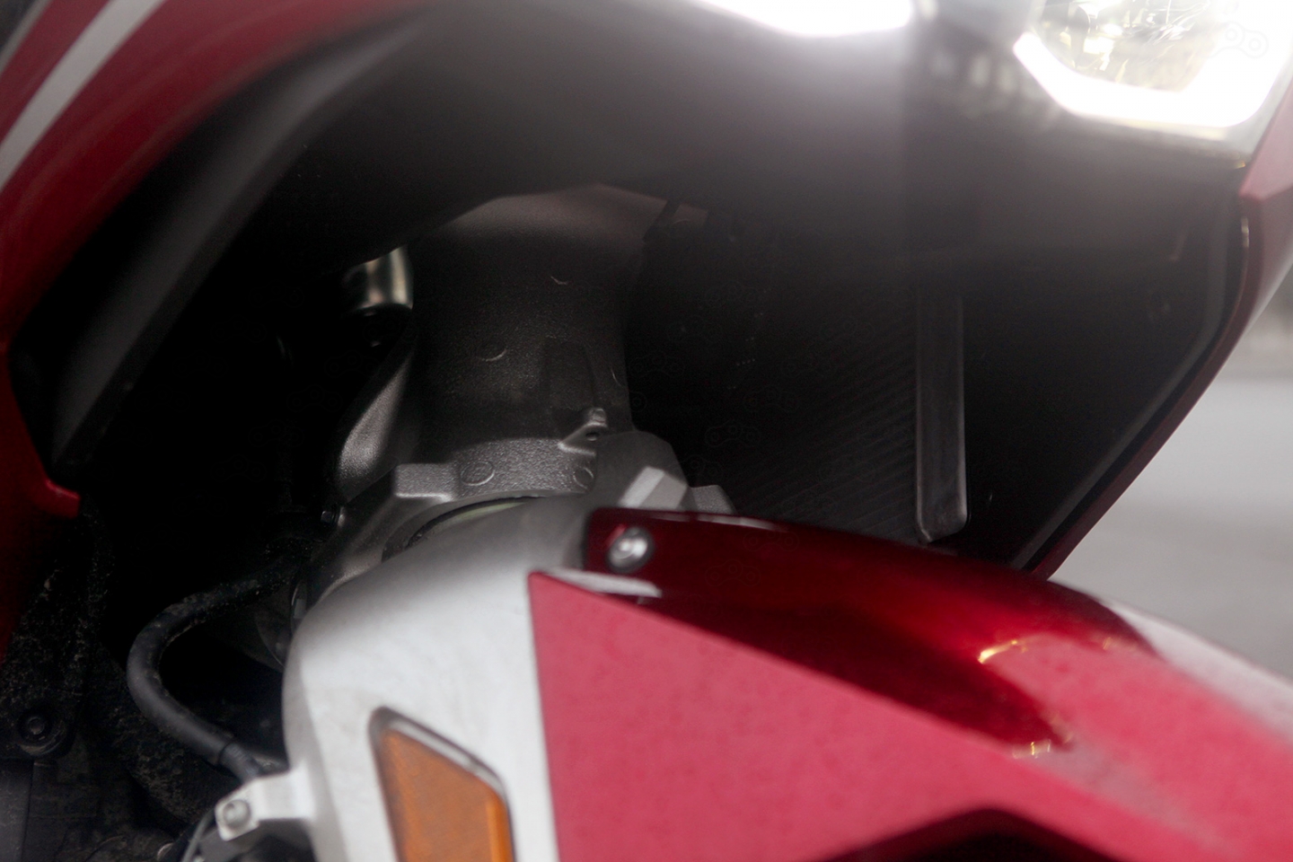 Ветровое стекло, наконец, получило электрорегулировку высоты, а вместо прорезанной форточки для вентиляции в жару – специальный выдвижной спойлер, направляющий поток воздуха на пилота. Выглядит он скромно, но работает на удивление исправно. И пусть само стекло стало меньше, ветрозащита осталась на высочайшем уровне, как и положено «Голдвингу».