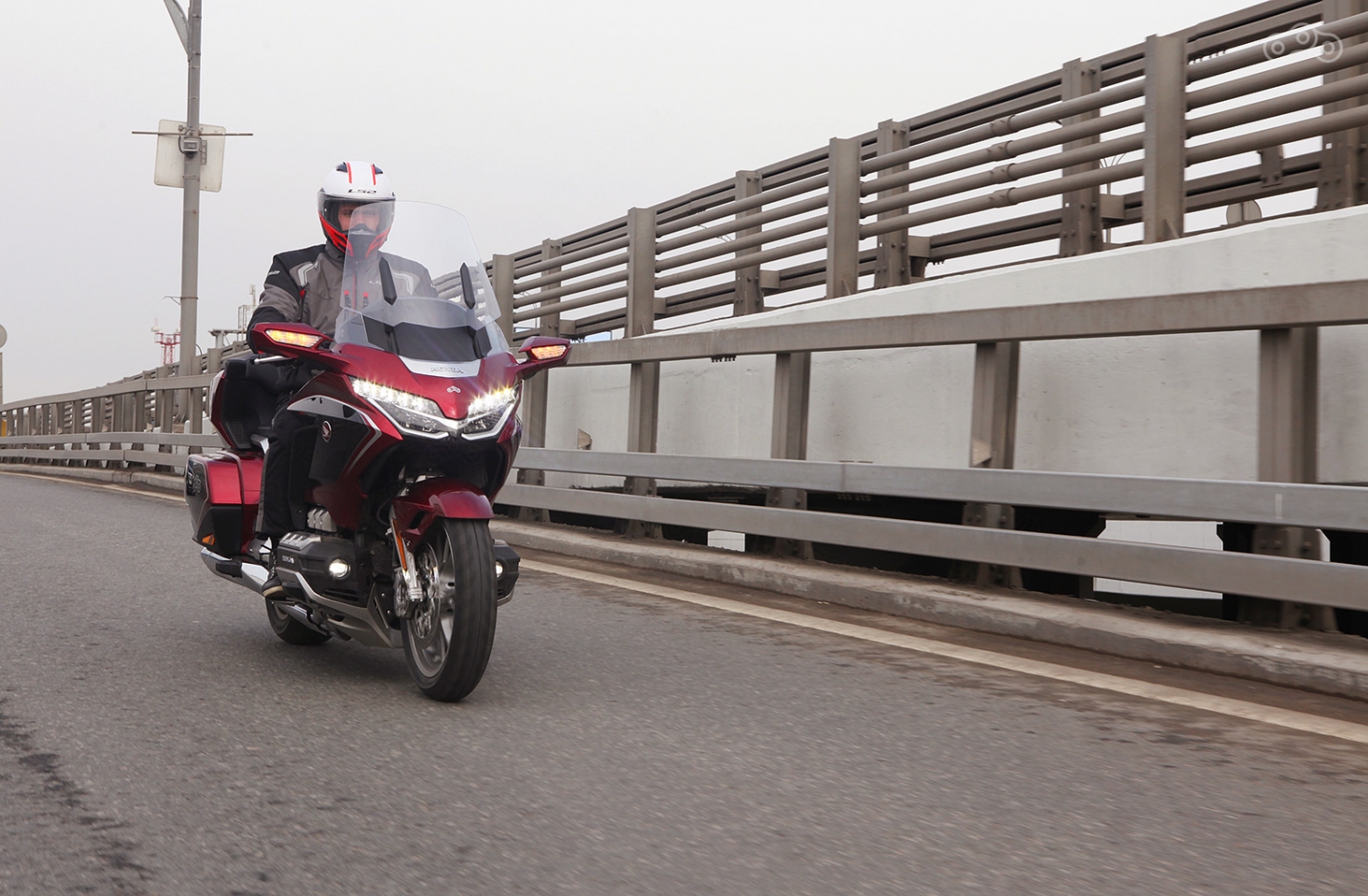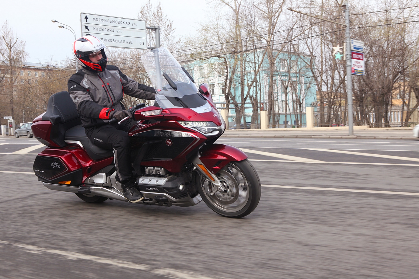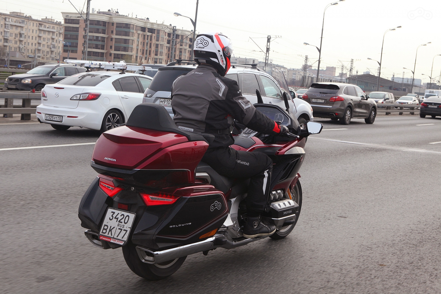 На скорости 180 и выше прежняя «Голда» была не самым стабильным мотоциклом, новая же, на фоне снижения парусности, массы и толковых подвесок, стала значительно послушнее и увереннее. Это же касается и тормозов – замедление эффективное и динамичное. Больше того, «умный» комбибрейк распределяет тормозные усилия так, что пользоваться можно лишь одним из рычагов тормоза, в то время, как мотоцикл будет замечательно тормозить двумя колесами, а если сработает ABS – тут же заморгает «аварийка», предупреждая тех, кто едет сзади.