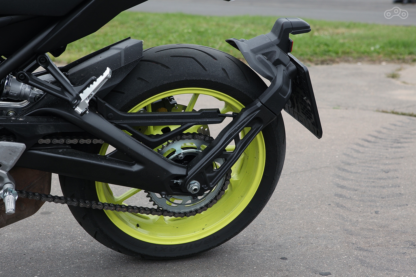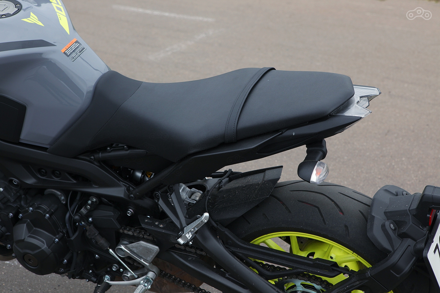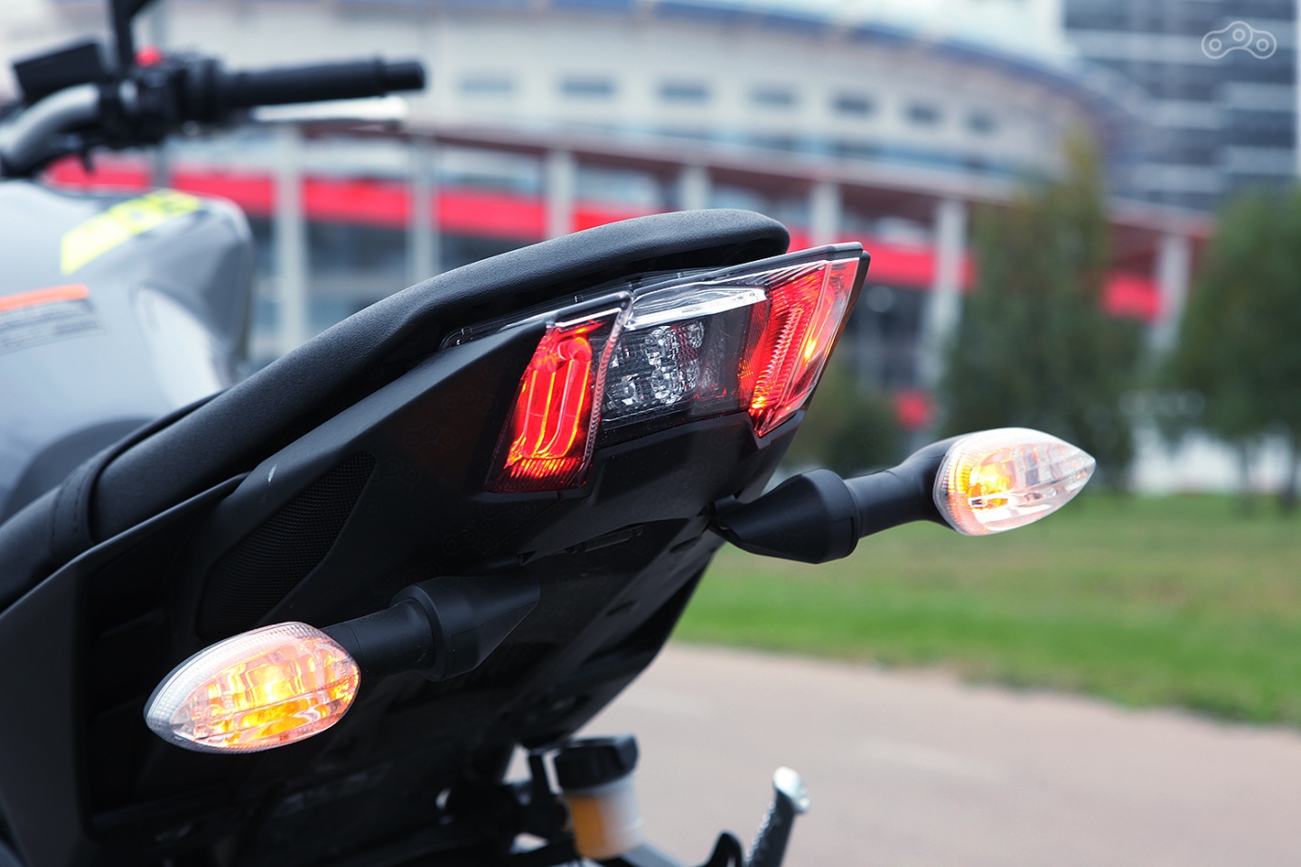 Впрочем, все изменения свелись к головной оптике, где широкая фара с лампой накаливания уступила место двум раскосым нахмуренным диодным амбразурам и оперению хвоста, где помимо прочего сменилась форма фонаря (привет BMW S1000R), а кронштейн номерного знака из-под задницы переехал на маятник. Не буду рассуждать о пагубности влияния его на неподрессоренные массы, скажу лишь, забегая вперёд, что толку от него больше не стало. Это означает, что владельцу новой «девятки», как впрочем, и «старой», придется постоянно сидеть в группе «мотопара» и прочих эскорт-услугах в поисках женщин с широкой спиной, способных эффективно отсекать от пилота поток воды и грязи, летящий с заднего колеса.