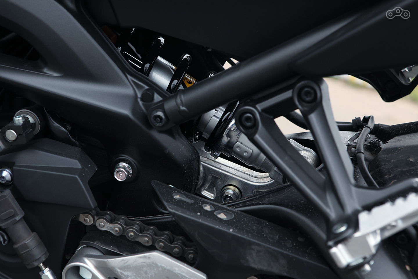 Всё потому, что шасси, которое, к слову, не изменилось по сравнению с «дорестайлом», остаётся одним из лучших в классе. Компоненты без откровений и провалов: регулируемый по преднатягу пружин и жёсткости отбоя «перевёртыш» с толстыми трубами, регулируемый же задний амортизатор работающий в паре с так называемым, ассиметричным двусторонним маятником, но какая гармония! Крутильная жёсткость эталонная, 188 килограмм снаряженной массы не ощущаются от слова «совсем», а настройки подвесок…