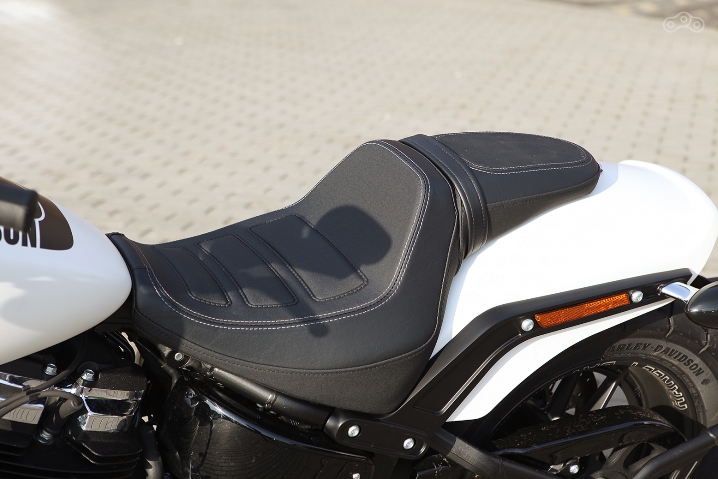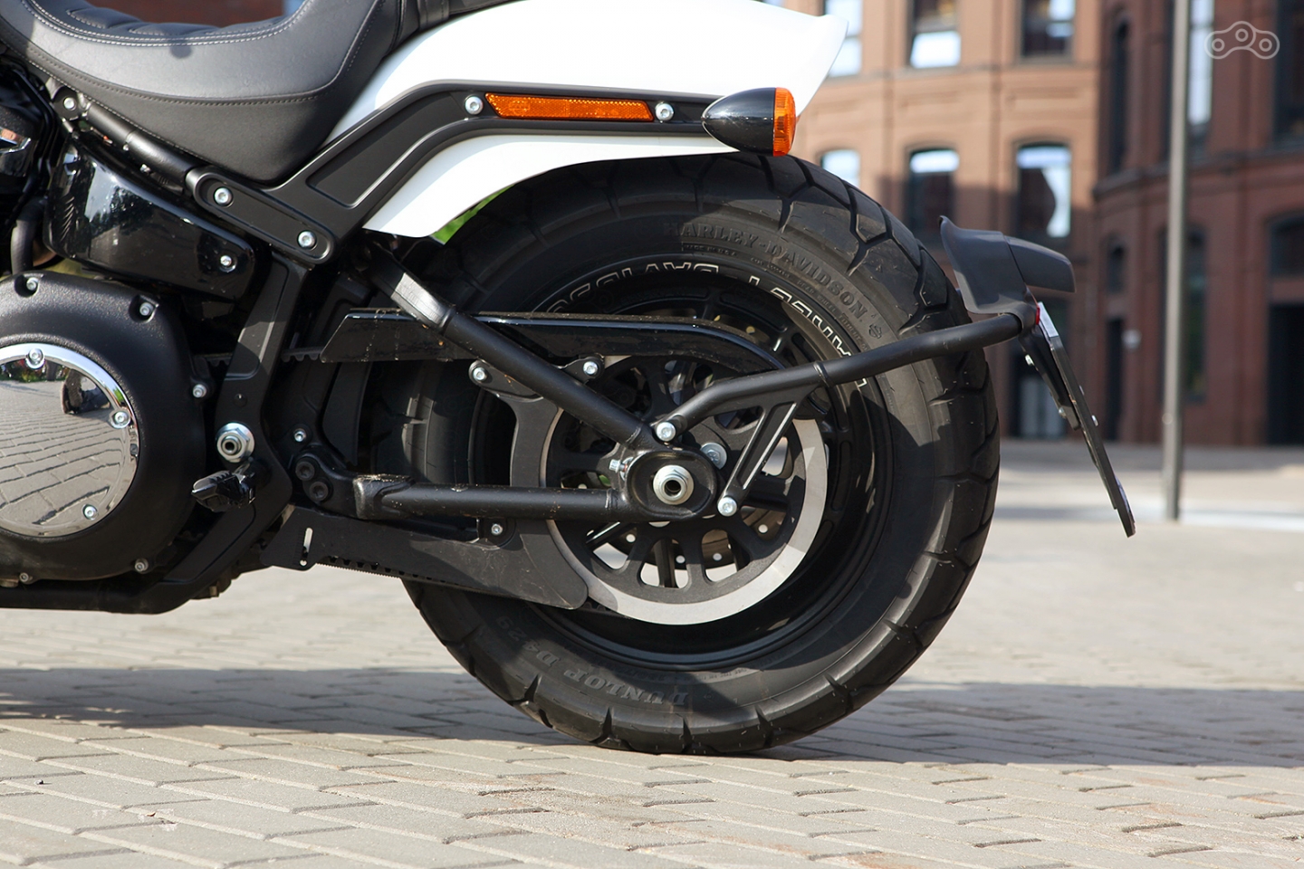В любом случае, мотоциклы из Милуоки давно не ассоциируются со спортивными болидами, так что с ватным шасси старые харлейщики смирились и научились жить, а новые ничего слаще морковки и не пробовали. Однако, сама компания, видимо, о старых временах не забывала и упорно работала над новым шасси. Разумеется, начали с семейства Softail, которое, к слову, поглотило в модельной гамме не так широко представленное семейство Dyna. Новый Fat Bob, раньше относившийся к «Дайне», сегодня называется «Софтейл», он и оказался в наших цепких лапах.