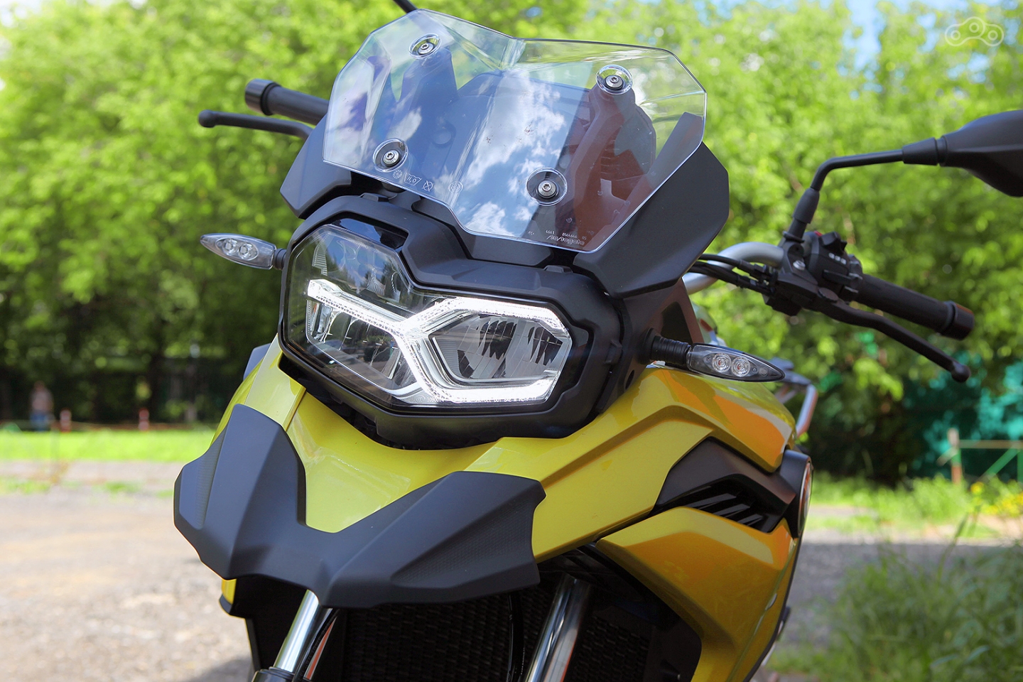 С одной стороны мотоцикл очень похож на Африку Твин, с другой – ни одного прямого заимствования, фирменный, хоть и удивительно хлипкий, «гусиный клюв» под полностью диодной фарой, аплодирую стоя! Фара вообще одна из самых прекрасных деталей, просто приковывающая взгляды – эффектный камертон ходовых огней, яркий свет, и асимметричный дизайн, который баварцы, не смотря на его давний выход из моды, умудряются не просто использовать, но и активно развивать.