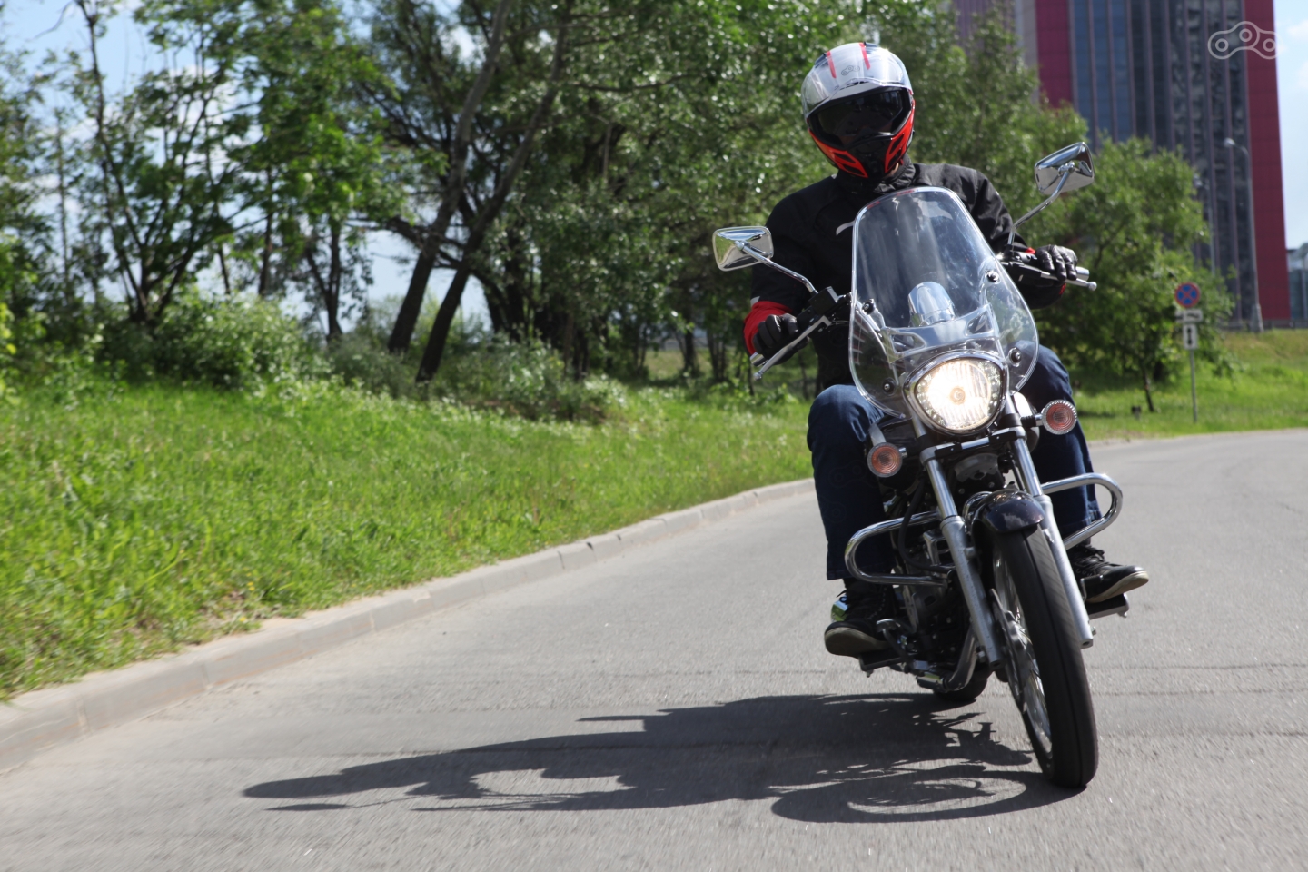 Зато само ветровое стекло достойно защищает от набегающего потока: если ваш рост подходит под определения «средний» или «небольшой» за мухобойкой получится спрятаться, но у меня голова торчит ровно над ним, поэтому все, что поднимает стекло летит ровно в шлем – получается шумно, зато ощущение скорости увеличивается – кажется, что едешь быстрее, чем на самом деле, поэтому такое не соответствие размеров не напрягает.