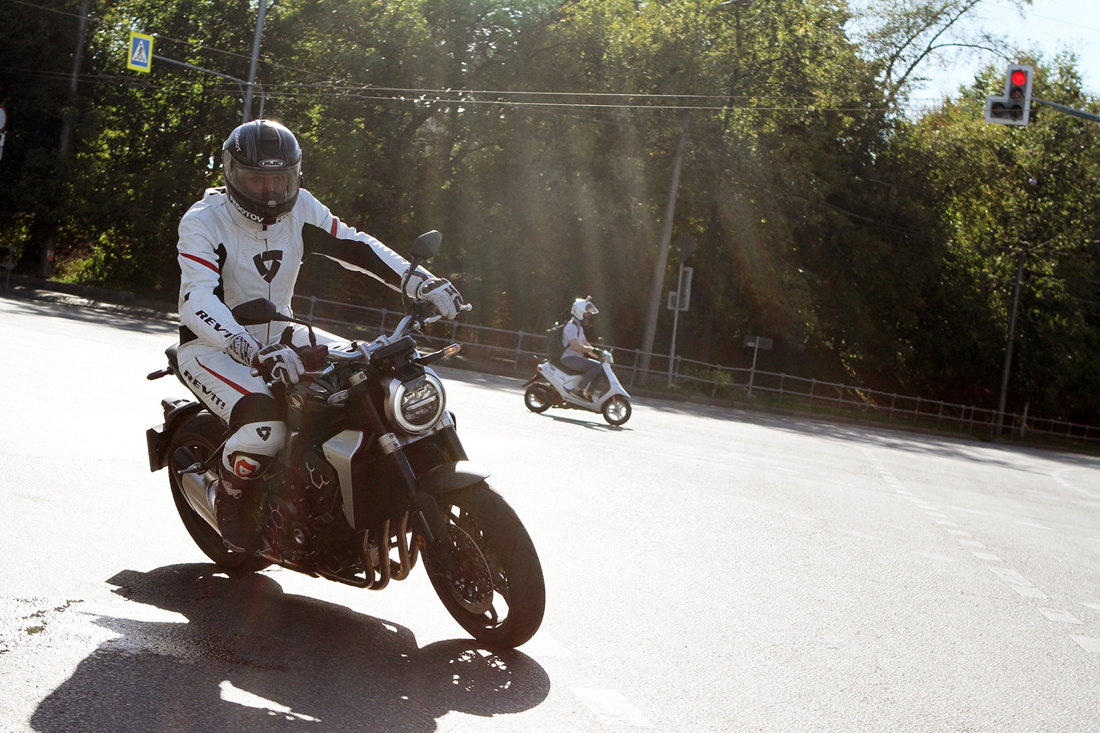 Отсутствие ветрозащиты скорее плюс для городской жары, однако для скоростных прострелов приходится надевать комбез