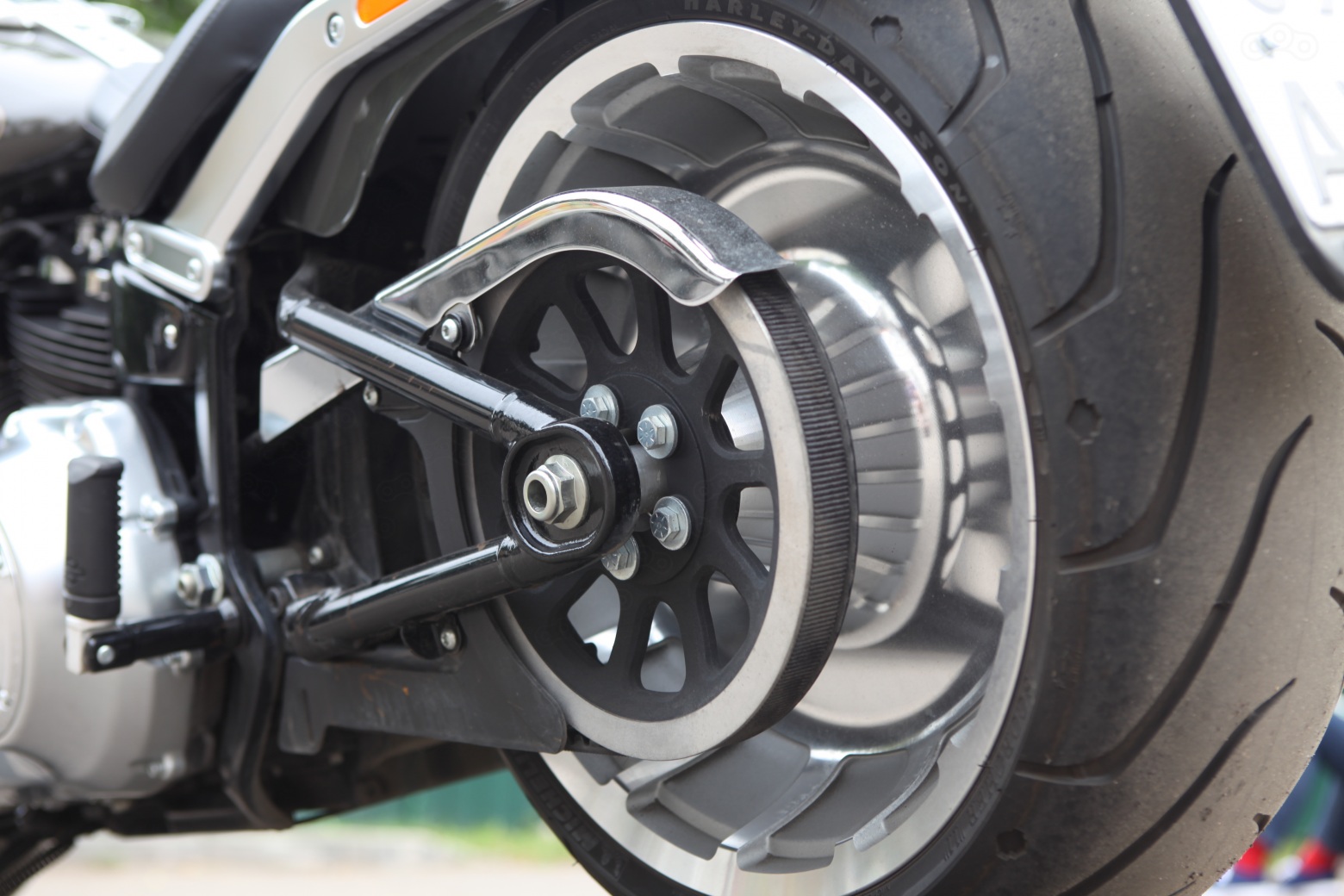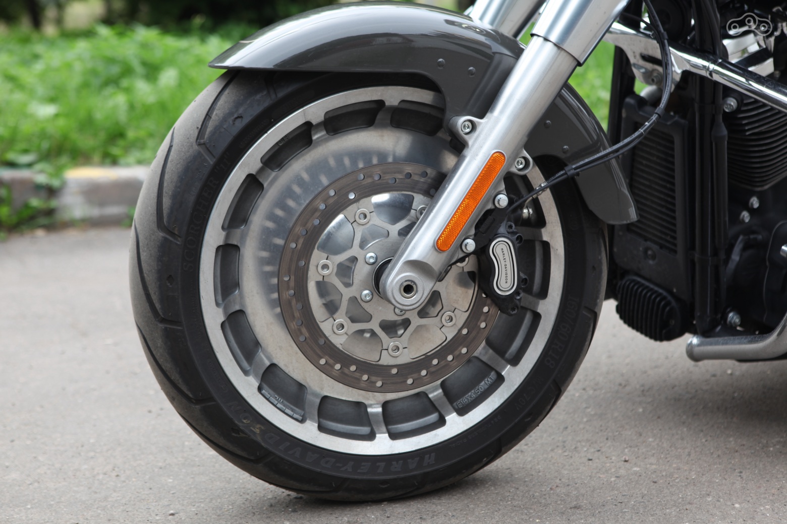 Впрочем, главным элементом дизайна «Толстого мальчика» выступает не оптика и не оперение, а колеса. Кажется, их сюда приделали, сняв с какого-то железнодорожного локомотива или бомбардировщика: 18-дюймовые, широченные, без отверстий, с рисунком, который сами американцы скоромно зовут «дизайном парового катка». Вот что получается, если музыку AC/DC отлить в металле.