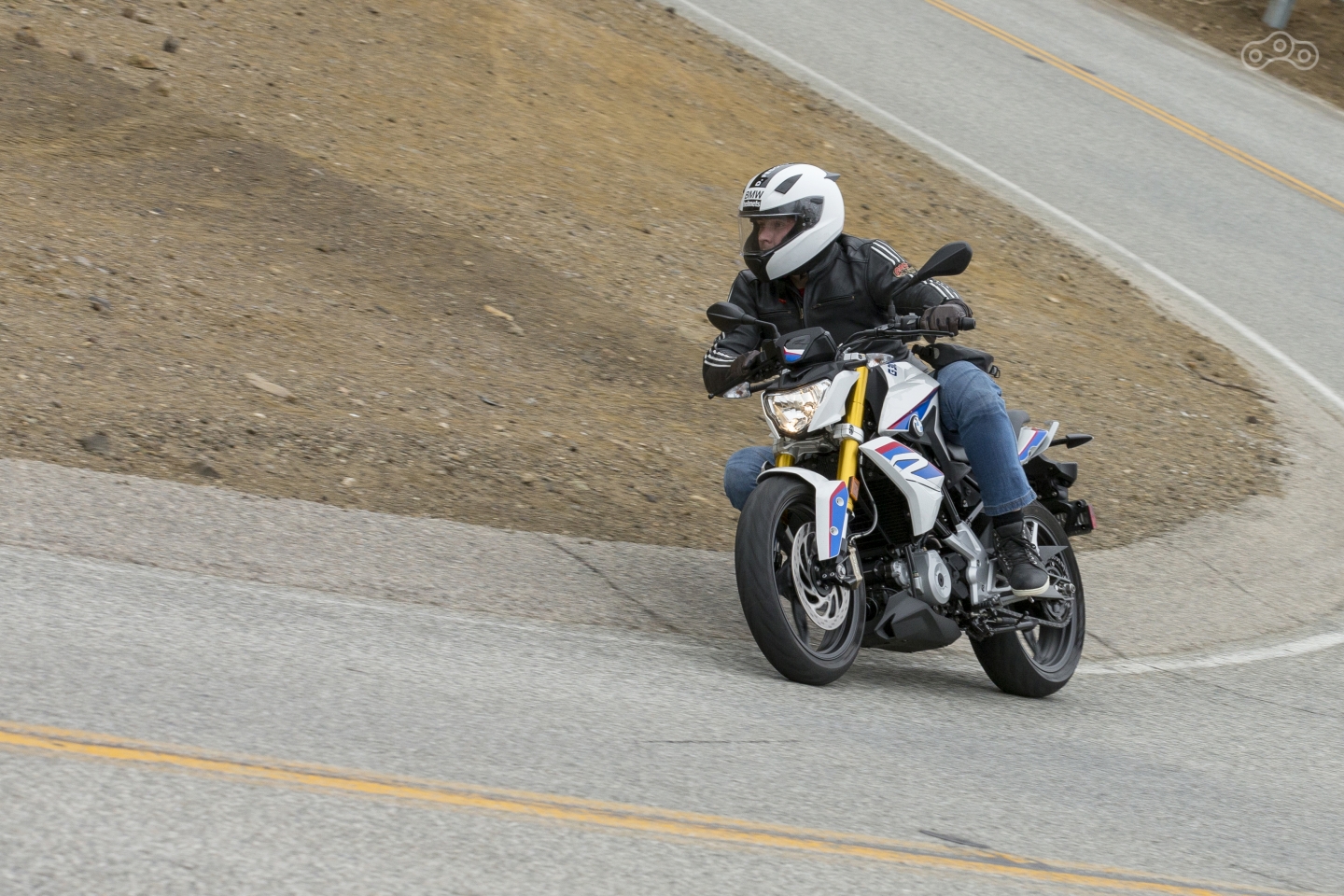 В горах на G310R можно ехать очень и очень быстро – с одной стороны невысокая мощность мотора даёт выкручивать рукоятку газа до упора даже не самым опытным пилотам, с другой – собранное и легкое шасси позволяют чувствовать себя уверенно, а случись чего — тормоза подстрахуют.