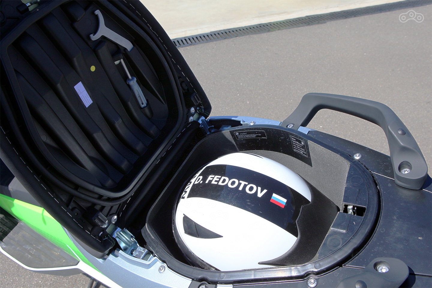 Подседельное пространство уступает багажникам бензиновых максискутеров из-за размещённых в передней части батарей