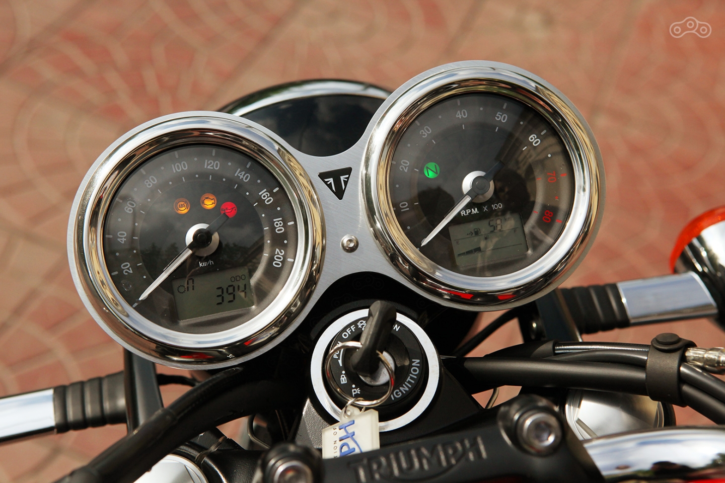 Приборная панель Triumph Bonneville T100 сочетает самые современные технологии с ностальгическим обликом