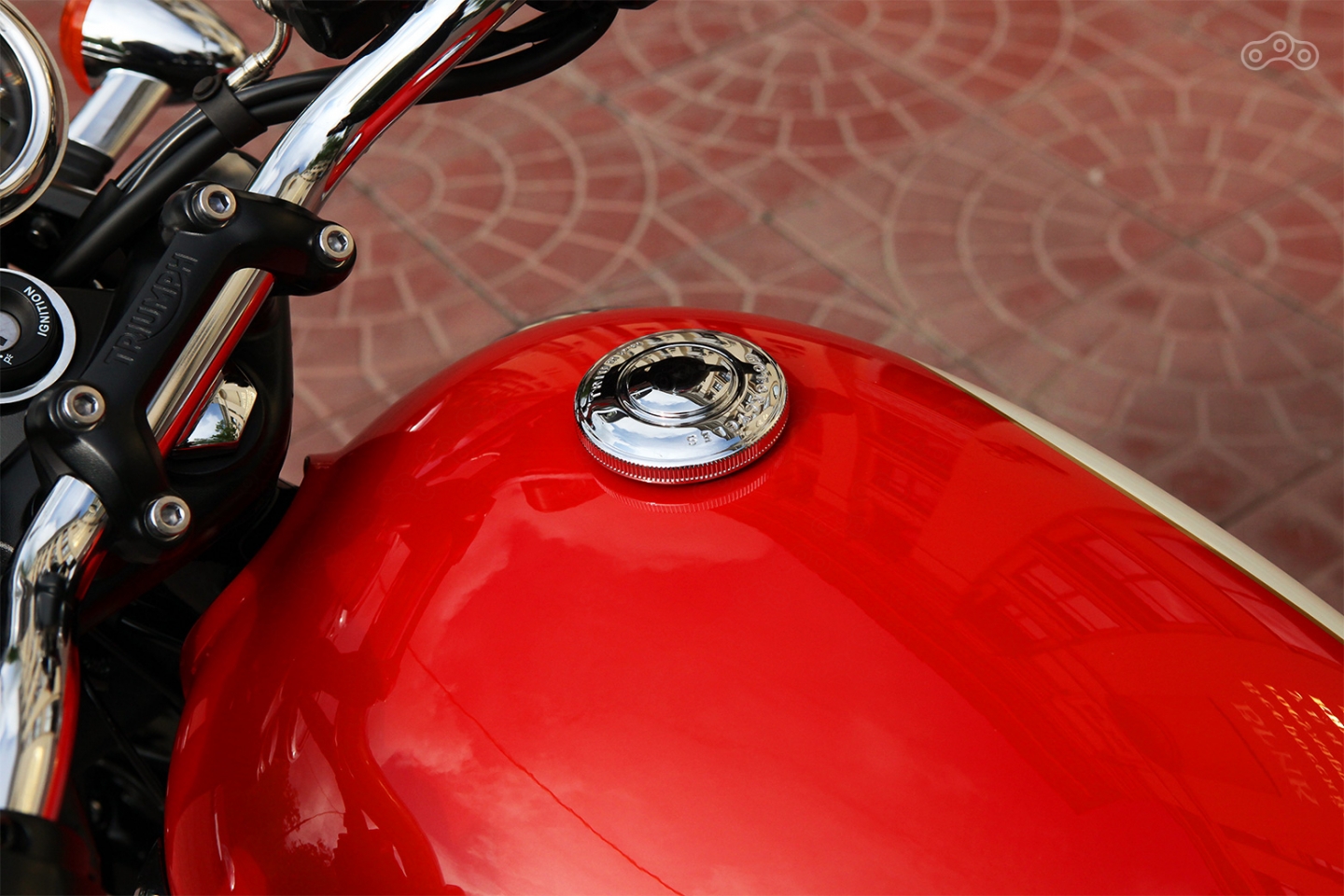 Вот, например, «очки» вокруг пары аналоговых «стаканов» приборной панели – теперь они не покрашены черной краской, а выполнены из шлифованного металла. А эти коричневые свечные колпачки с надписью Triumph – реверанс временам, когда эти детали изготавливали из эбонита, а резиновые нигрипсы на баке, покрашенном в два цвета, разделенными золотистым «страйпом». Хорошая заявка на премиальный сегмент и кошельки аудитории, традиционно выбирающей Harley-Davidson!