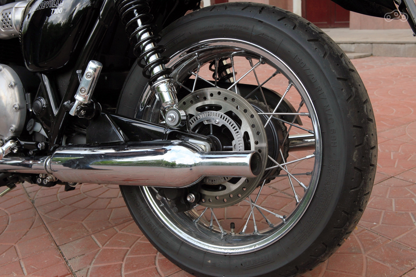 Тормоза – простые плавающие двухпоршневые скобы, которые на удивление хорошо работают, во многом благодаря армированным тормозным шлангам и добротным главным тормозным цилиндрам. Да и скорости уже не те что в «шестидесятых», так что нынешнему поколению Bonneville достаточно и одного тормозного диска спереди.
