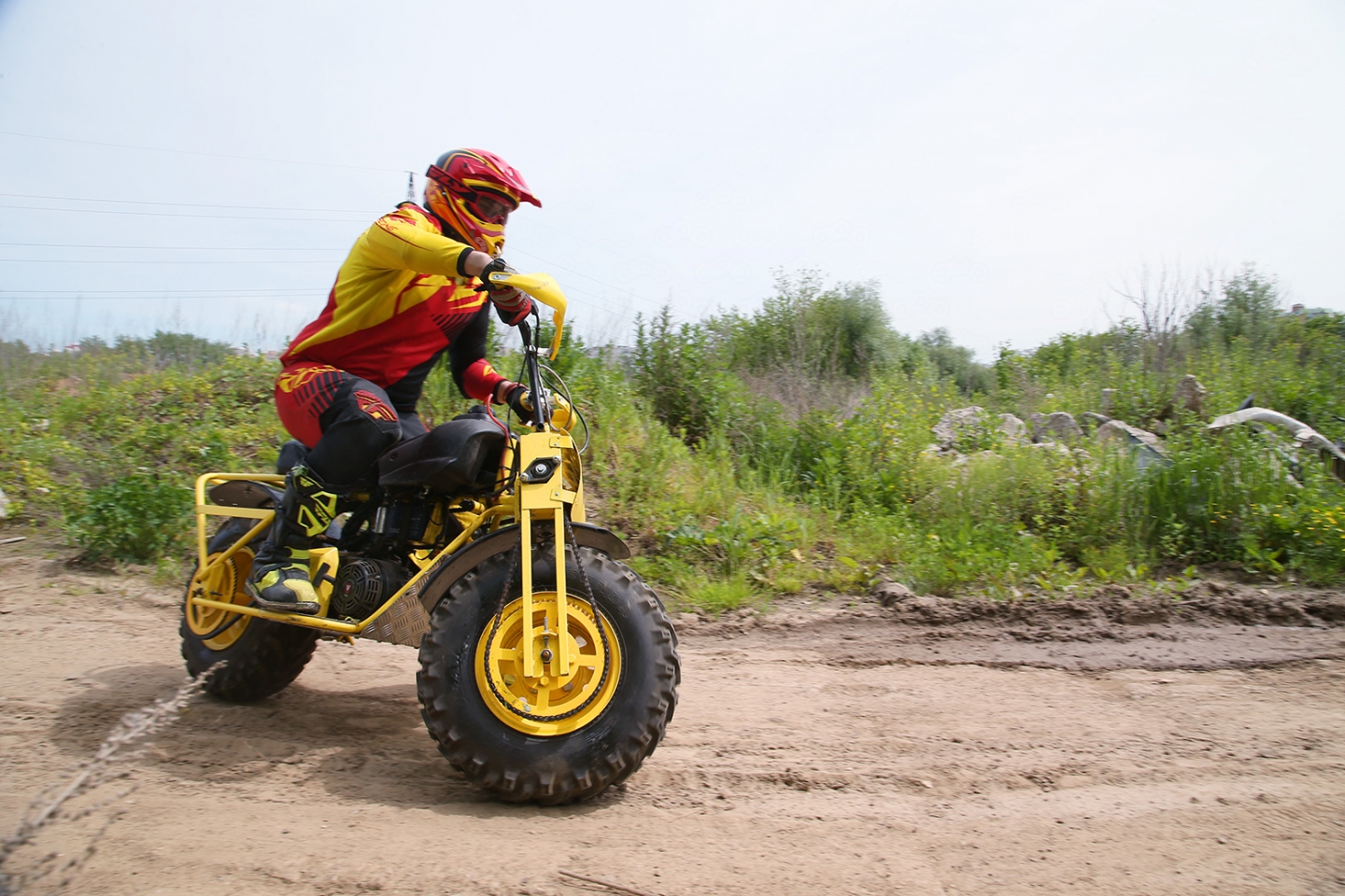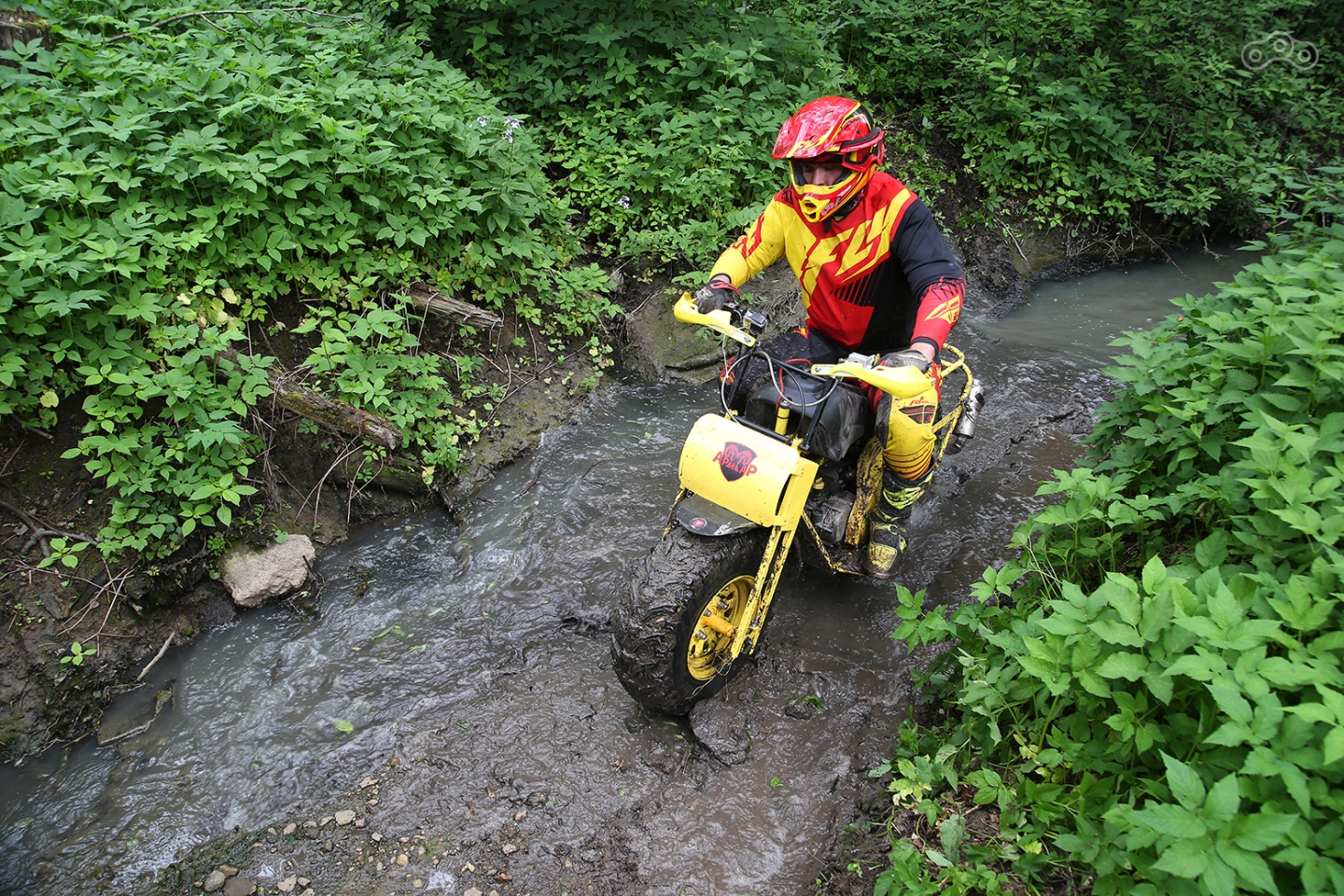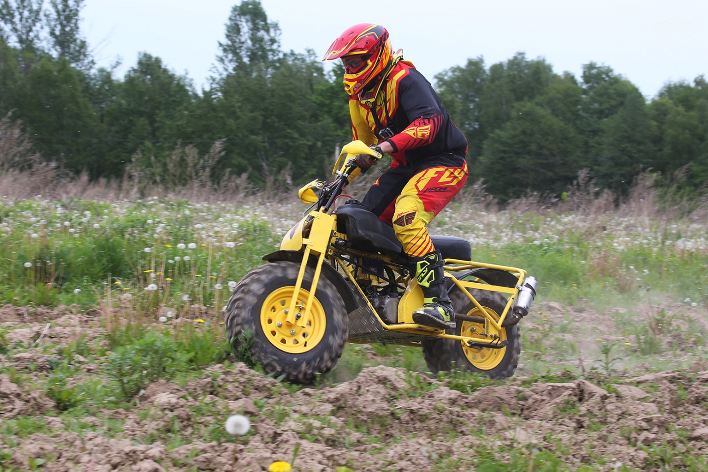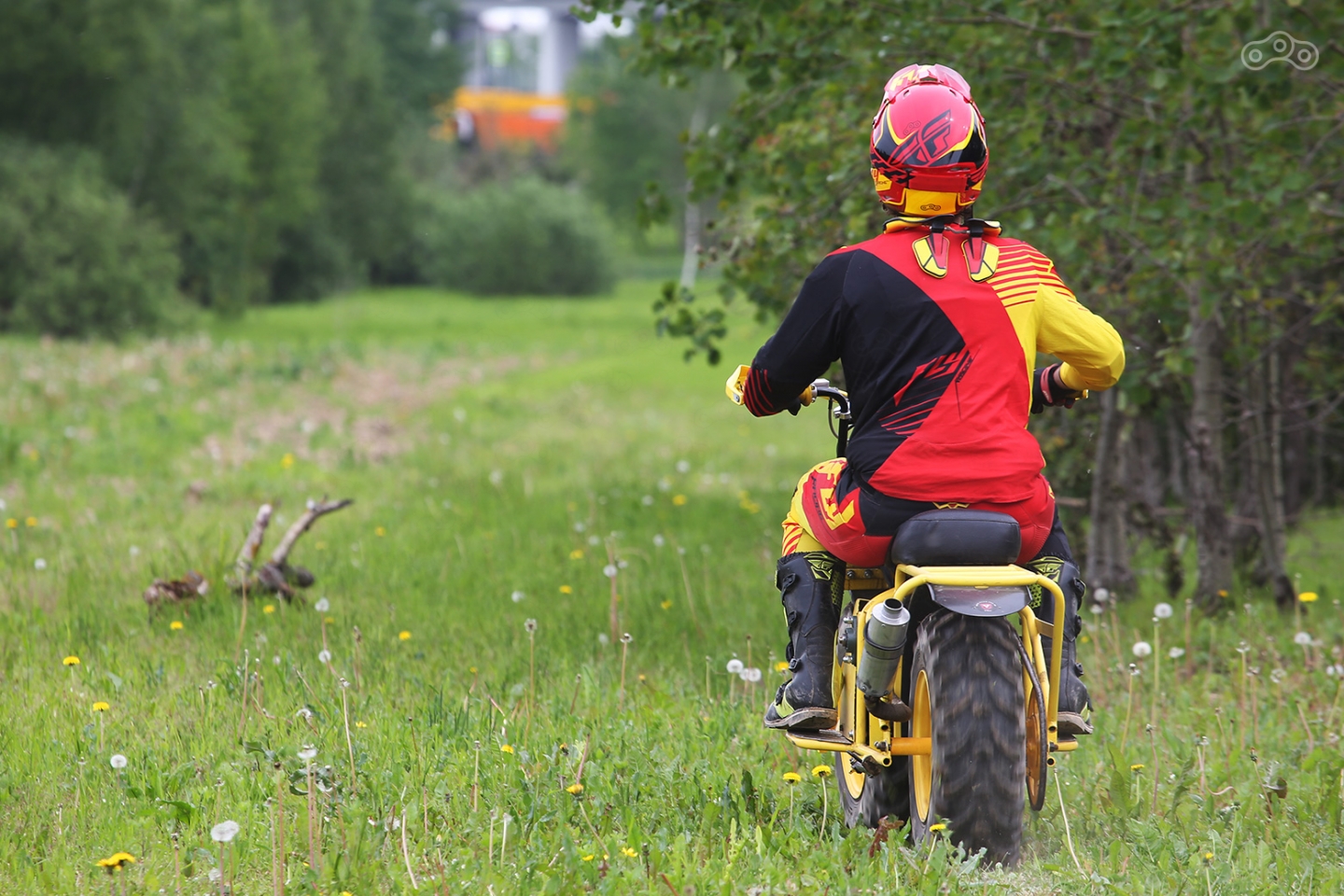Спасает скорость, вернее её отсутствие: спидометра у мотоцикла нет, но по ощущениям, «максималка» составляет километров 20-25 в час, не больше. И это – на «быстрых» ведущих звездах, для жёсткого бездорожья передаточное отношение ещё сильнее укорачивают, из-за чего максимальная скорость становится меньше, зато мотоцикл бодрее берёт подъёмы.