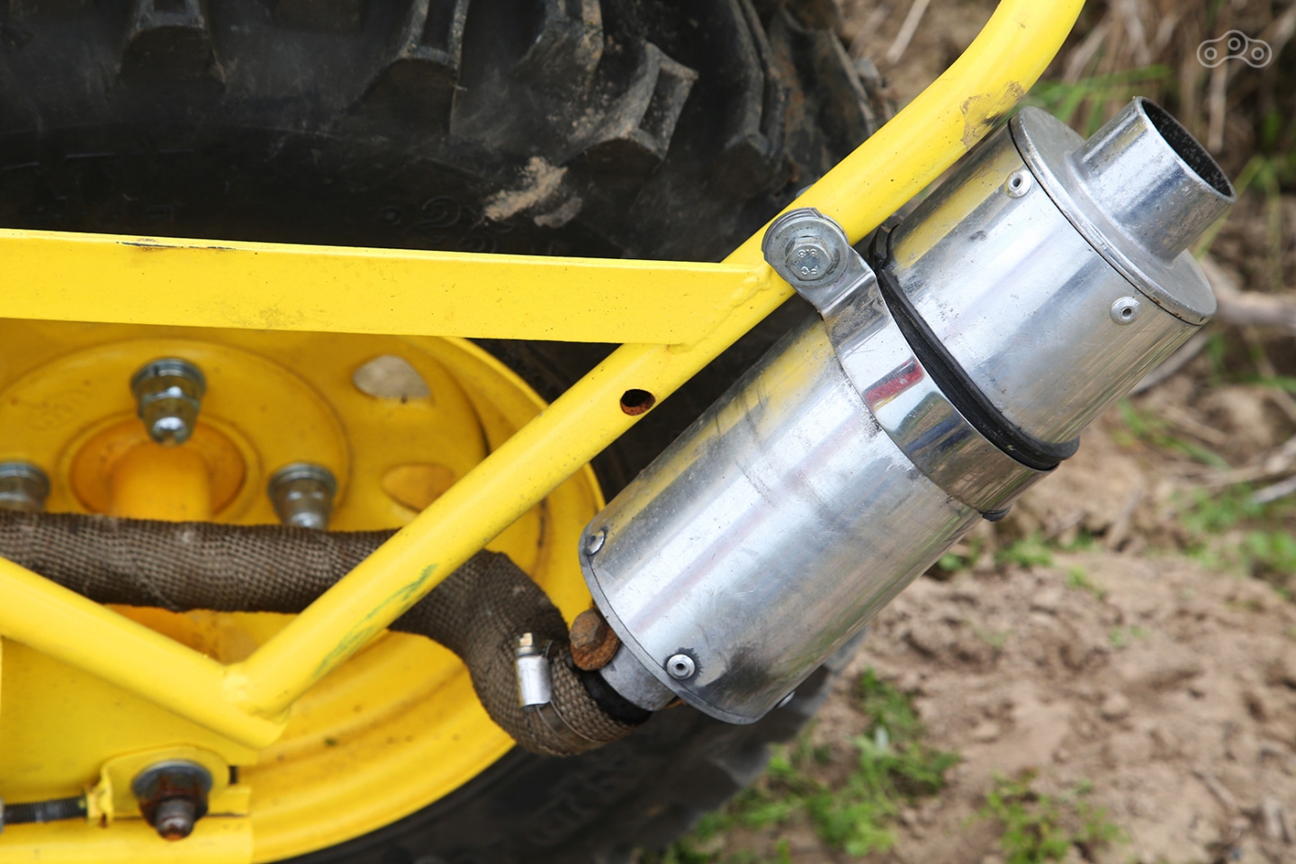 Звучит сложно? Выглядит тоже, но полноприводная трансмиссия и не может быть простой! Зато все остальные системы мотоцикла до неприличия аскетичны: пространственная рама, сваренная из стальных труб, всего один дисковый тормоз, расположенный на трансмиссии и замедляющий два колеса одновременно, полное отсутствие индикации и освещения – нет даже контрольных ламп и счетчика моточасов. Впрочем, по желанию заказчика, фару установить всё же можно, да и электроники в тестовом мотоцикле не так уж и мало.