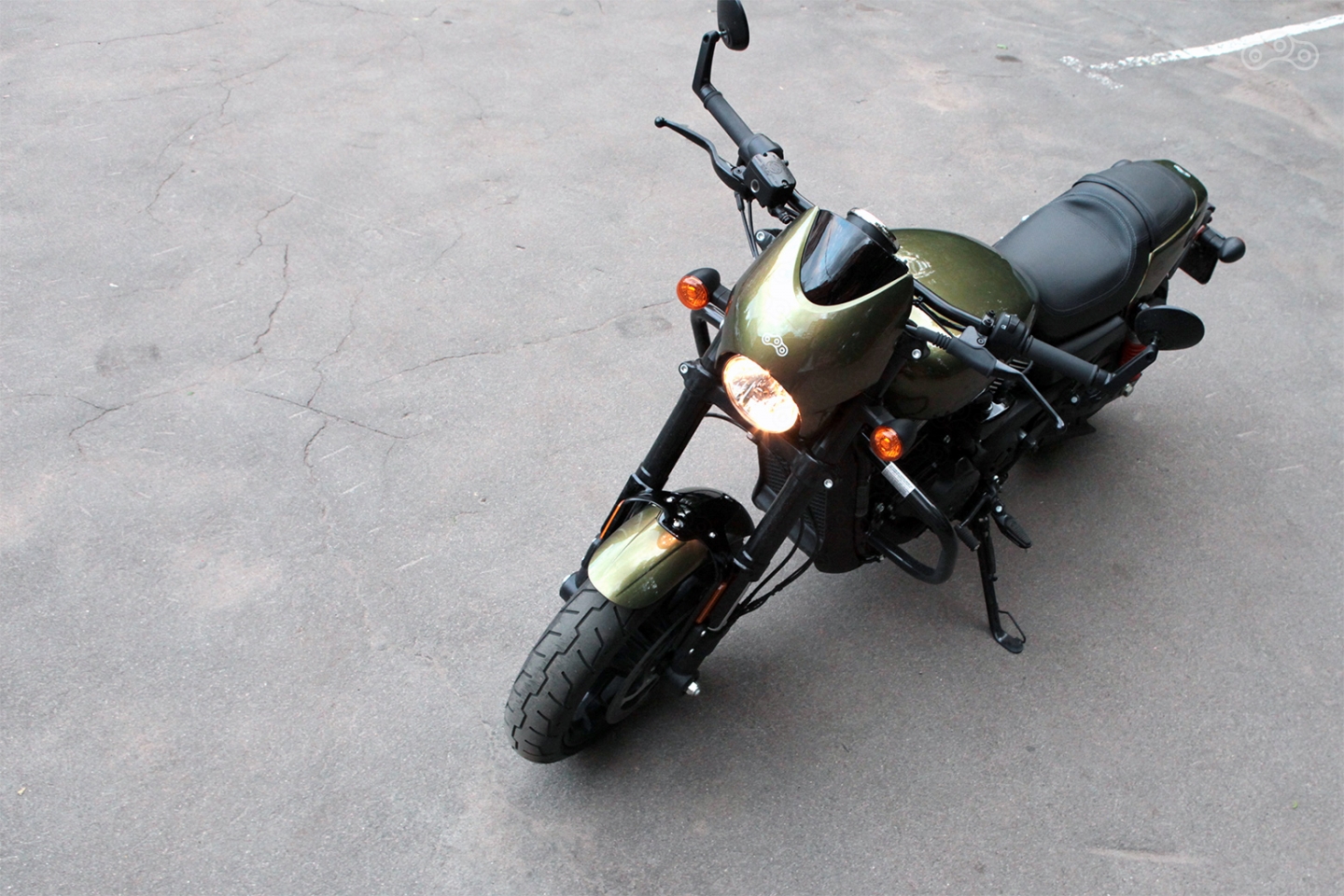 Да, без откровений на низах и без чудес на верхах, отсечка, кстати, находится на отметке в 9000 об/мин, но ехать он позволяет весьма и весьма шустро. Под стать и коробка – вместо сочного и смачного удара, привычного по прочим моделям «Харли», традиционный для «рисомолок» щелчок, ход рычага скромный, ложные «нейтрали» не вылезают, передачи переключаются чётко.