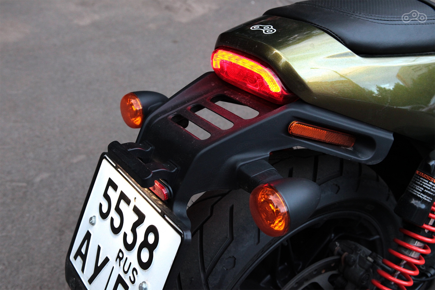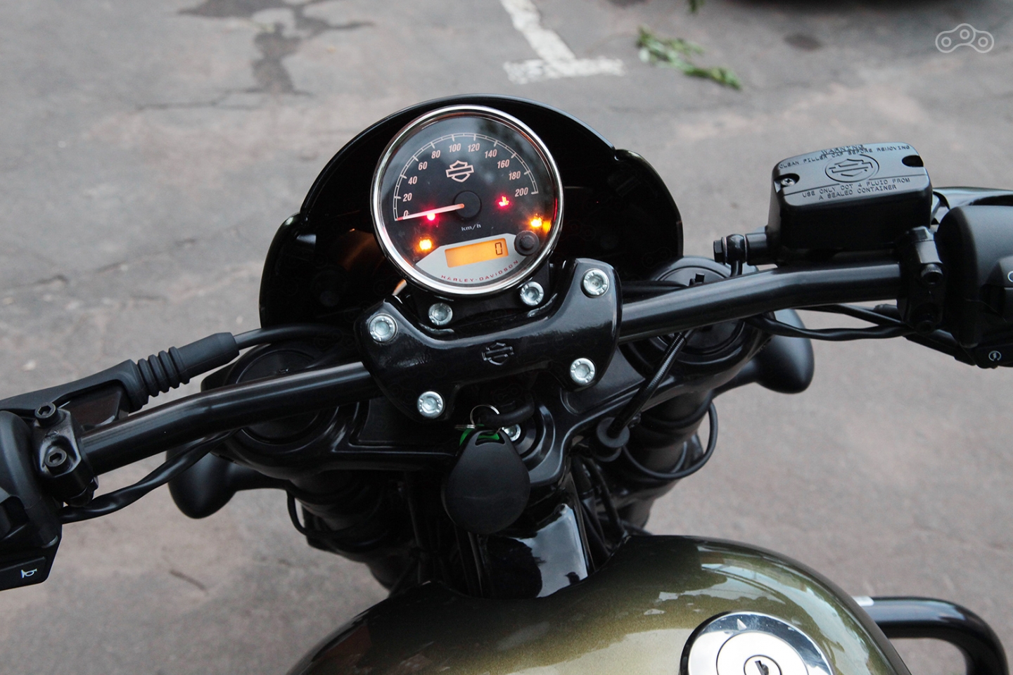 И если силуэт мотоцикла хорош и издалека он безошибочно идентифицируется как Harley-Davidson, вблизи некоторые детали оскорбляют чувства эстетов вроде меня: сварные швы на баке деликатными не называть, переднее крыло, хоть и закреплено на стальной штампованной детали – пластмассовое, а пульты выглядят примитивно, неаккуратно и дёшево, как и рычаг сцепления со страшной резинкой.