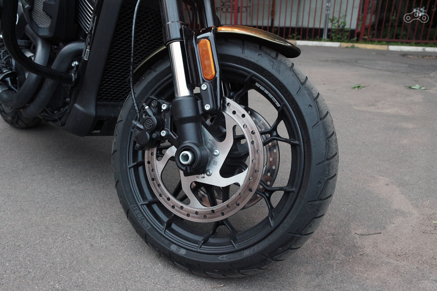 Отсутствие регулировок подвесок, кроме пресловутой возможности поджать пружины задних амортизаторов, не досаждает, ибо от шасси всё равно ждёшь меньшего. Вдобавок, новые семнадцатидюймовые колёса, обутые в шины привычной размерности, наделяют Street Rod достойными ездовыми качествами. И пусть внушительная масса в 229 кг даёт о себе знать, удовольствие именно от езды, а не от борьбы и преодоления мотоцикла – неимоверное.
