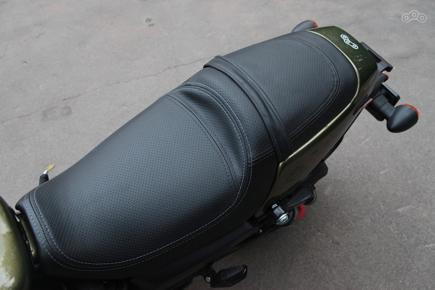 Посадка здесь вообще не создана для высоких парней – седло расположено довольно высоко, к рулю приходится тянуться, а задранные подножки смещены вперёд относительно законов жанра. Однако, упрекнуть водительское место в тесноте нельзя, а необычная посадка как минимум выделяет мотоцикл на фоне конкурентов.