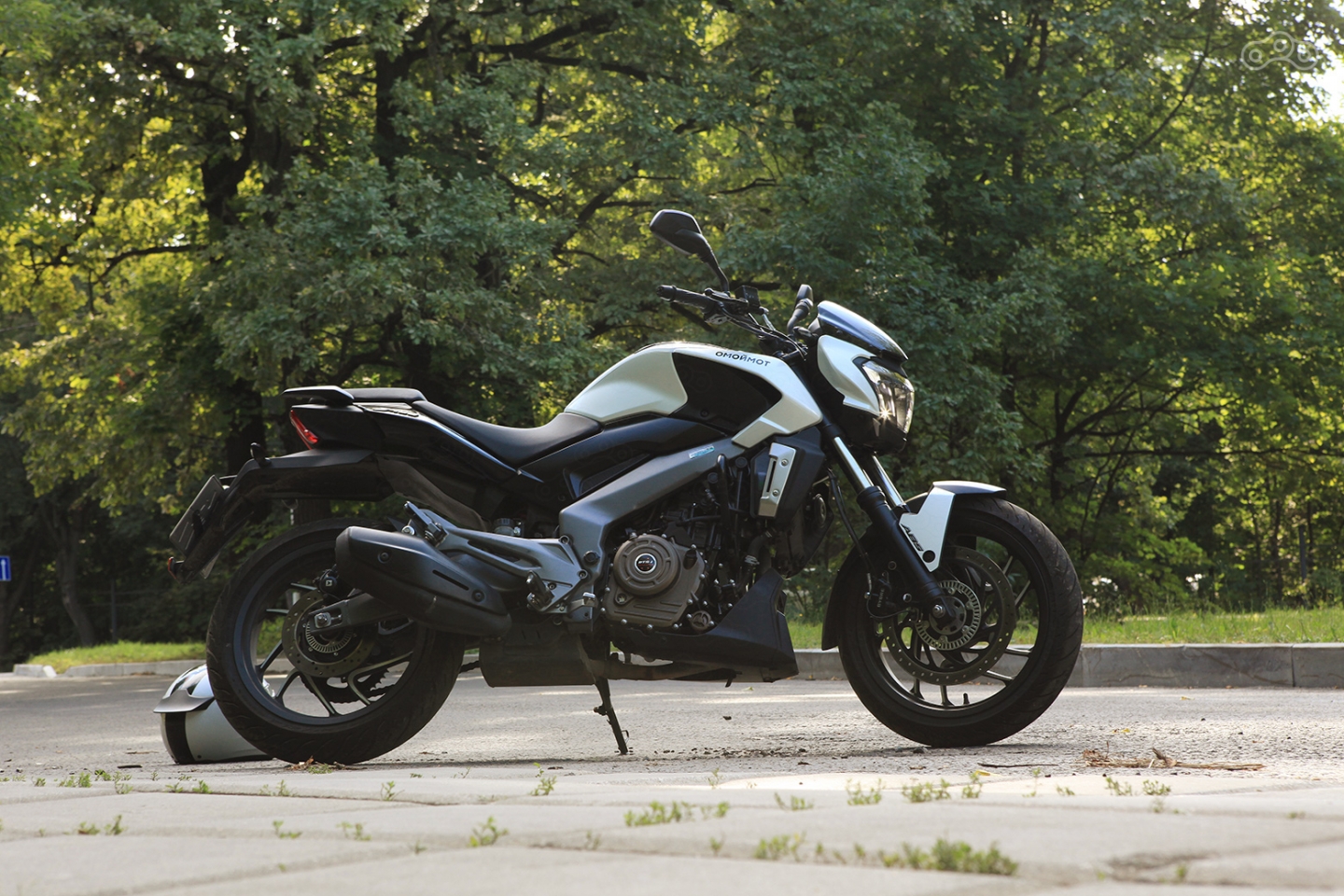 Интересно было другое: как при схожем с KTM Duke 390 объёме и конструктиве, а также индийским ноу-хау в виде трехголового змея Горыныча системы зажигания, разница в заявленной мощности составляет аж девять лошадиных сил, 44 у КТМ, против 35 у Bajaj.