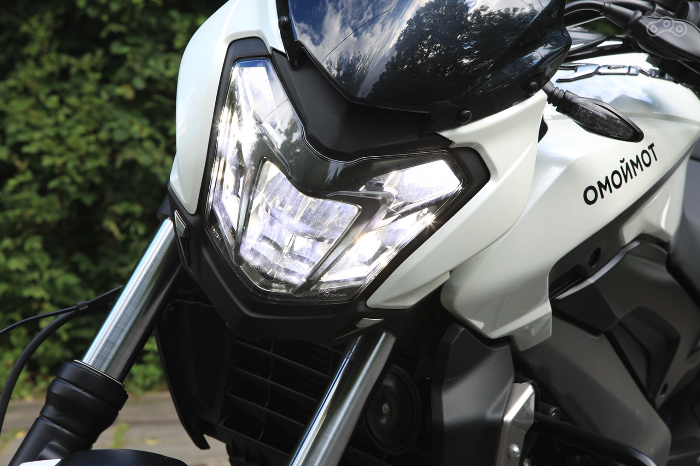 На яркий облик работает и оптика: светодиоды здесь не только в заднем фонаре, поворотниках и ходовых огнях, но и в фаре на ближнем и дальнем свете. Смотрится фара, сногсшибательно и, что важно – намного дороже, чем просят за мотоцикл. Тем, кто выбирает мотоцикл глазами, чтение можно закончить на этом абзаце и бежать трогать мотоцикл в салон. Тем же, кто выбирает аппарат исходя из других критериев, однозначно ответить «да» будет сложнее.