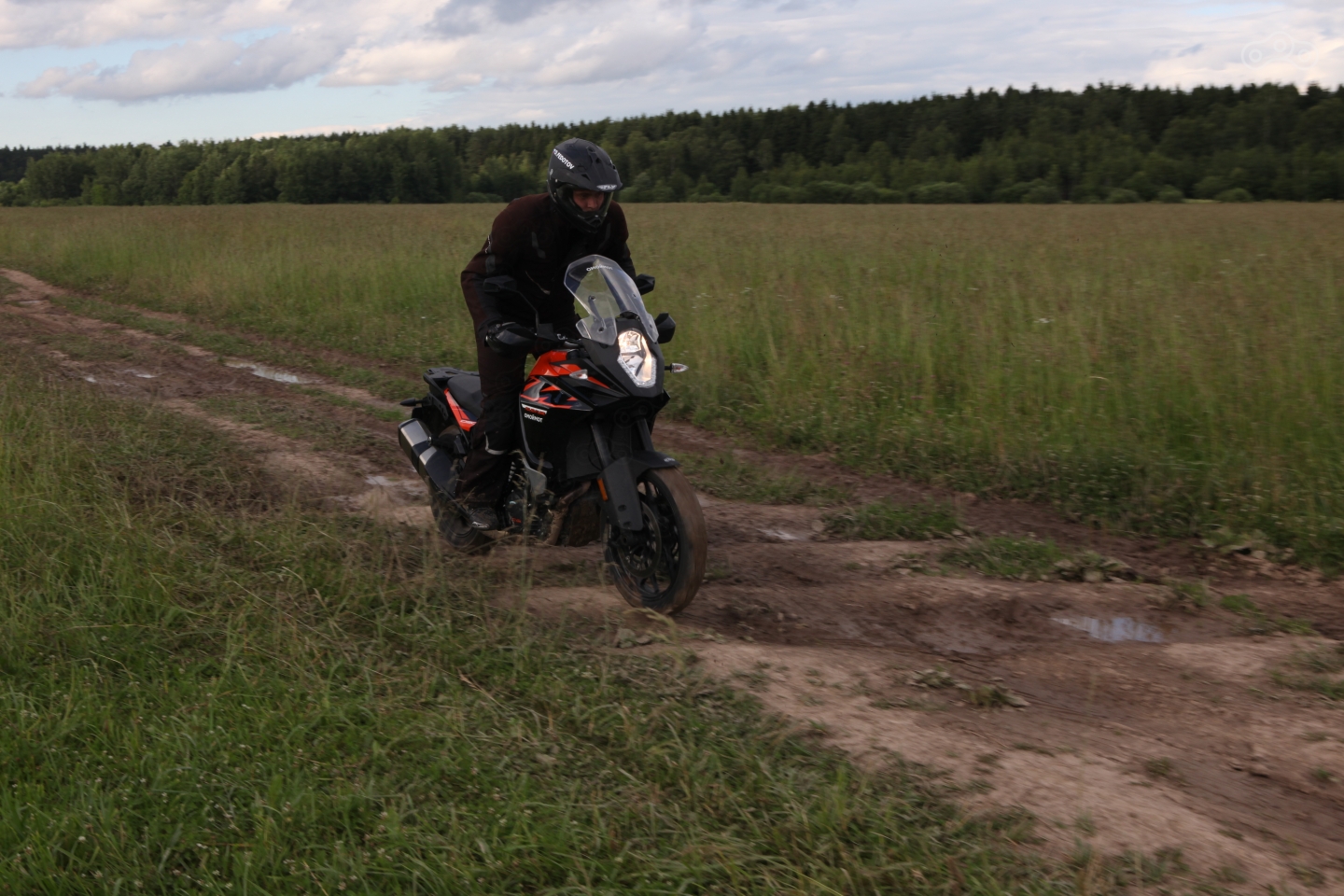 Но всё же главная заслуга и прорыв аппарата – лёгкость. Ни один Adventure на моей памяти не ощущался таким невесомым! За рулём мотоцикл следует неукоснительно, раскачивание парируется открытием газа и загрузкой задней подвески, ничто не выдает в повадках послушного аппарата литровый турэндуро. Чего только стоит рычаг сцепления, выжимать который не напрягаясь можно одним пальцем!