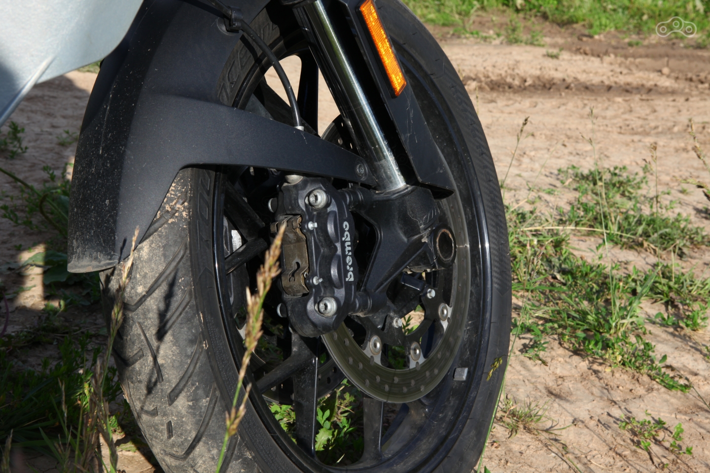 За эффективное замедление отвечают оппозитные суппорта Brembo с радиальными креплениями и штатной ABS