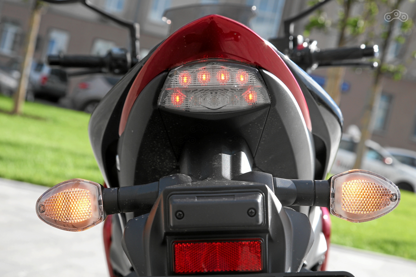 Аналогичное впечатление производят и тормоза – суппорты Brembo эффективно осаживают аппарат с любых скоростей, но обратной связи, особенно спереди, не хватает катастрофически. Шланги без арматуры раздуваются, да и сама тормозная машинка далека от идеала так же, как и барашек регулировки рычага, меняющий свое положение от вибраций. Спасает ABS, по рычагу и педали можно просто лупить, наслаждаясь стрекотом современной антиблокировки. Для города – нормально, для трека – не очень.