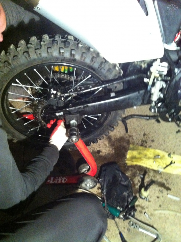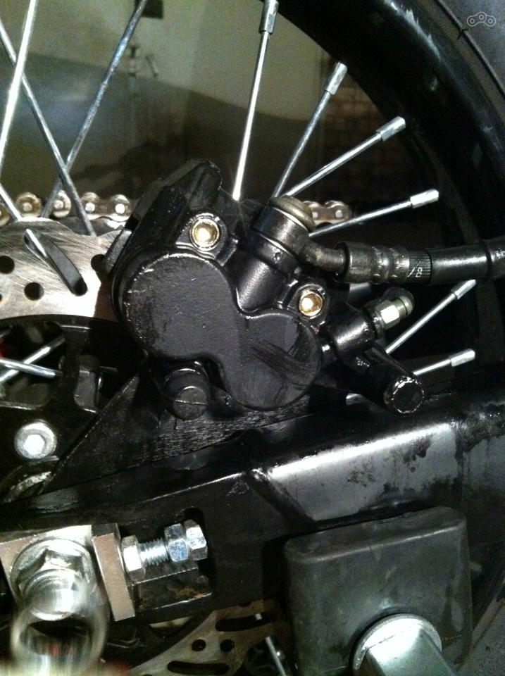 Впрочем, я вполне могу понять, простить и даже немного разделить неприязнь супруга к моей пердяжке. В день покупки он заявил, что отказывается помогать мне в техническом обслуживании этого недоноска безымянных узкоглазых инженеров. Естественно, спустя некоторое время, удлиннившийся до некомфортного тормозной путь, борщ и пара скромных, но эффективных навыков семейной жизни свели в одном гараже опытного рукастого мужчину в лице мужа и KAYO T2 с целью прокачать задний тормоз. В тот раз истинное наслаждение тупиковой ситуацией нам доставило расположение тормозной машинки, избравшей себе место, гарантирующее воздушный мешок при сколь угодно интенсивном прокачивании заднего тормоза (северо-восток тормозного диска). Воистину, китайскую инженерию может осилить только русская смекалка. Но и она в конце концов сталкивается с прославленной сказками иванушкиной ленью и все заканчивается установкой завалявшейся в гараже тормомозной системой Nissin.