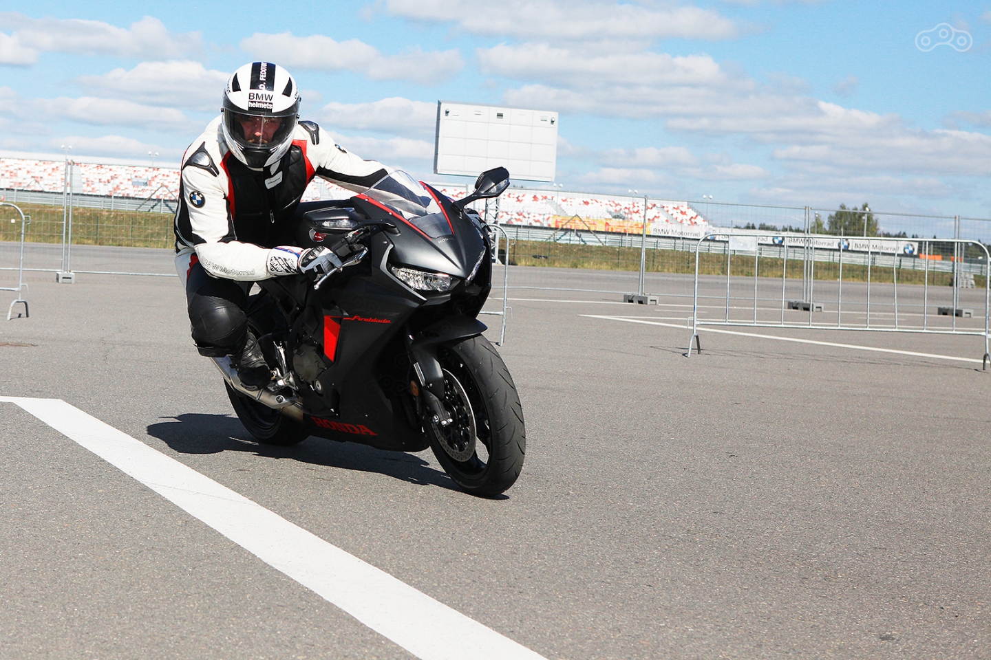 От нового fireblade SP1 я ждал паровозной тяги, напоминающей "кувалду" или что-то подобное, но, увы и ах—НЕТ. По ощущениям нет никакой колоссальной разницы в разгоне (по крайней мере ожидалось больше). Но зато этот мотоцикл продолжает резво тянуть примерно до 280 без каких-то ощутимых провалов по тяге. Далее в силу вступает фактор малого ветровика и практически отсутствующей ветровой защиты в таких условиях. На МРВ ты это не замечаешь ибо после прямика ты сразу оттормаживаешлся, сбросив почти две сотни, и ныряешь в поворот перед прямой старт-финиш. А вот на трассе ты чувствуешь все недостатки такого малого ветровичка в виде каскада бомбардировок визора всевозможными крылатыми насекомыми разных размеров, и увы, деться от этого некуда. Мотоцикл предназначен для поездок город-трек.