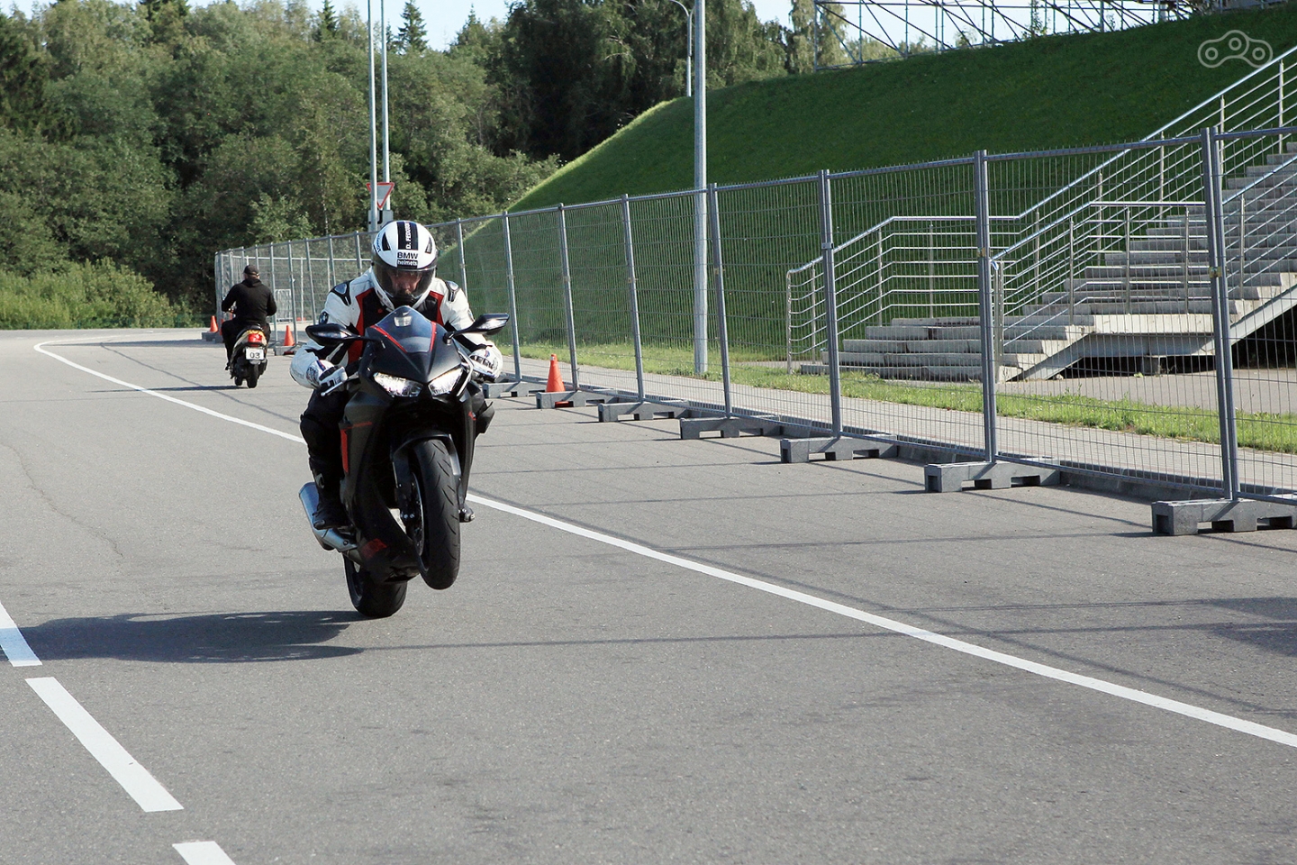 Но вот по электронике-он хорош. Он очень лёгок в управлении и при этом стабилен. Благодаря электронному демпферу ты забываешь о многих нестабильных реакциях мотоцикла, управление становится немного "аркадней". Квик, кстати, оказался жёстче, чем на "сырке"(s1000rr) и прям ръяно "пинает" под зад. Очень забавно, что к динамике мотоцикла привыкаешь очень быстро. И это основное, о чем хотелось сказать: ты всем телом запоминаешь, где находится граница дозволенной динамики и с каким ускорением можно смело выходить из поворота, ты понимаешь те дозировки, которые задумывались конструкторами. После этого я сел на свою добрую боевую 600ку и ощутил, что фантомные ощущения остались и позволяют более смело и быстро доходить до грани, но при этом не пересекать её. И это реально прикольное ощущение, ведь порой для получения уверенного чувства слайда приходиться наяривать пару-тройку сессий, прикатываясь к условиям держака, а тут смело после одной ты знаешь, что делаешь.