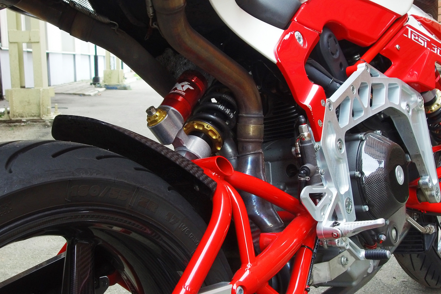 Признаться, на свои деньги мотоцикл выглядит лишь снизу – гармония алых рычагов и лоснящегося фрезерованного алюминия заставляет ноги подкашиваться. Любоваться ей можно вечно, особенно карбоновым оперением, спрятанным под белой и красной краской.