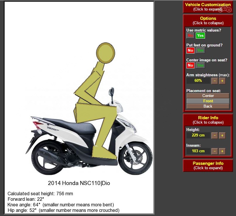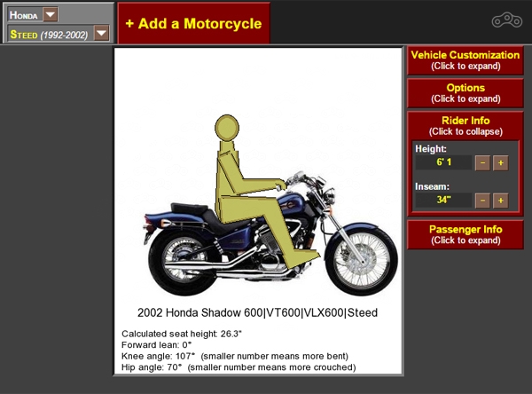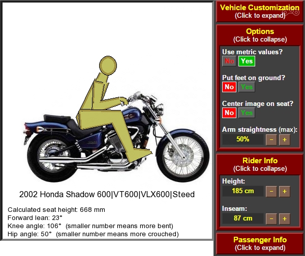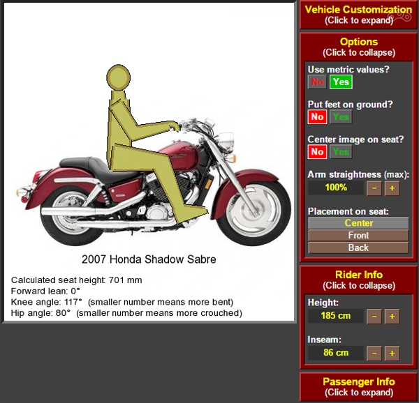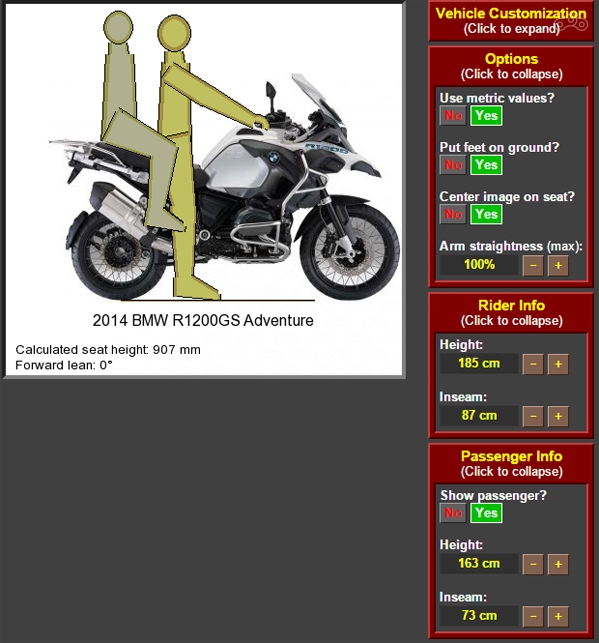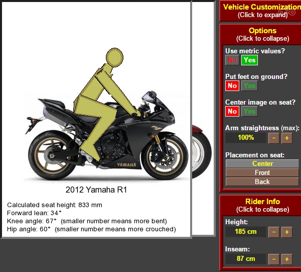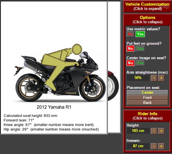 Этот сайт будет полезен для примерки произвольного человека к произвольному мотоциклу. Он поможет понять, насколько он туда помещается или же не помещается.